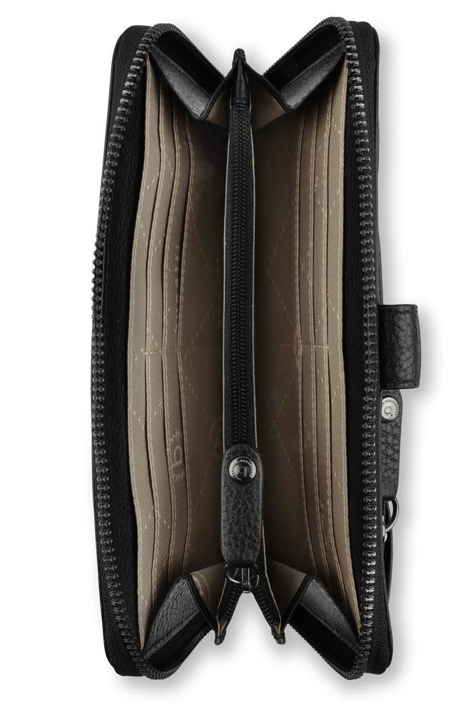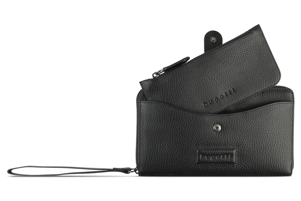 Кошелёк женский BUGATTI ЭЛЬЗА | ELSA с ключницей, с RFID, чёрный, воловья кожа/полиэстер, 18,7х3х10,7 см, 49462601
