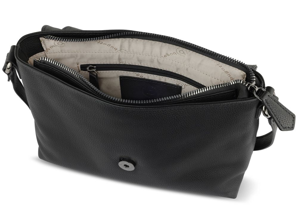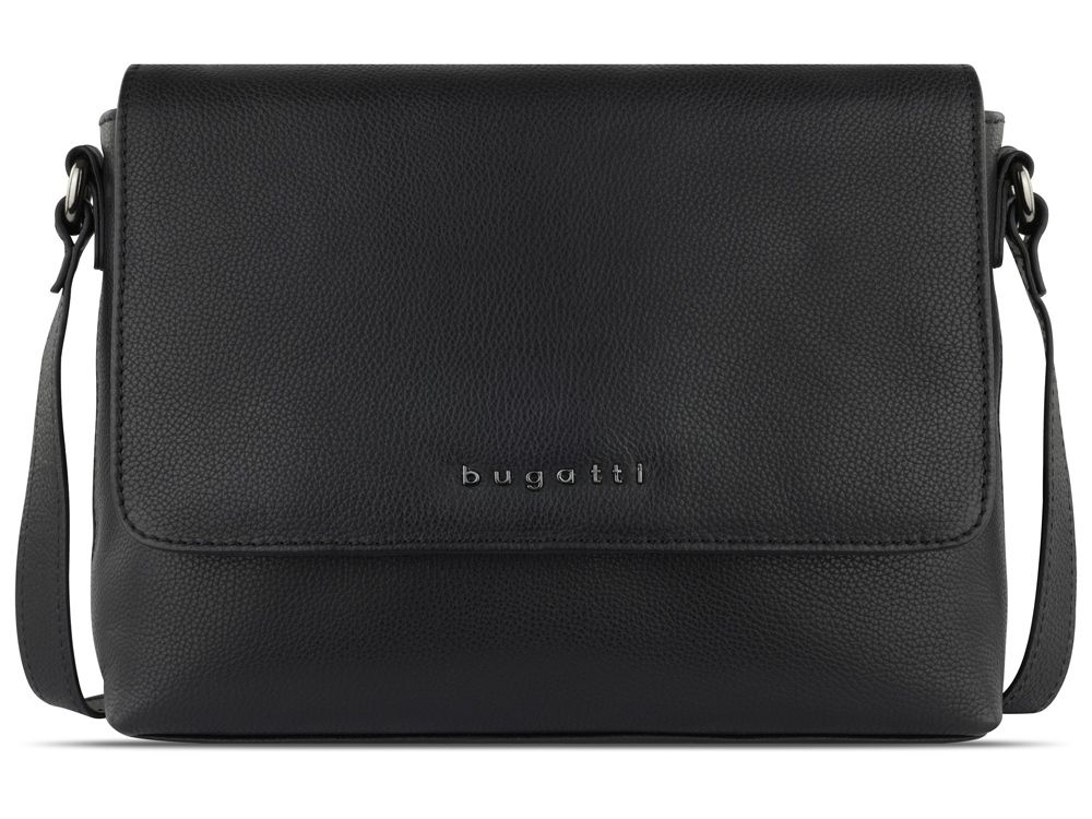 Сумка наплечная женская BUGATTI БЕЛЛА | BELLA, чёрная, воловья кожа/полиэстер, 25х8х20 см, 49480301