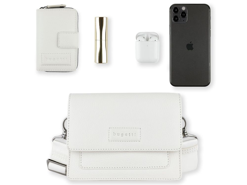 Сумка через плечо женская BUGATTI ЭЛЬЗА | ELSA, белая, воловья кожа/полиэстер, 18,5х8,5х14,5 см, 49460440