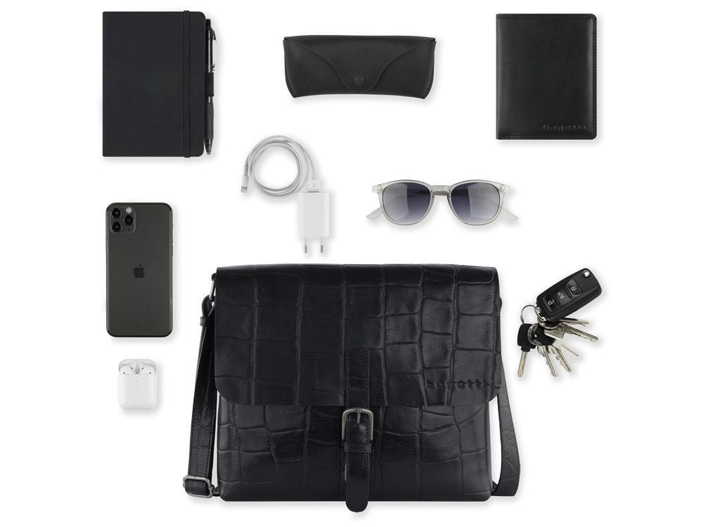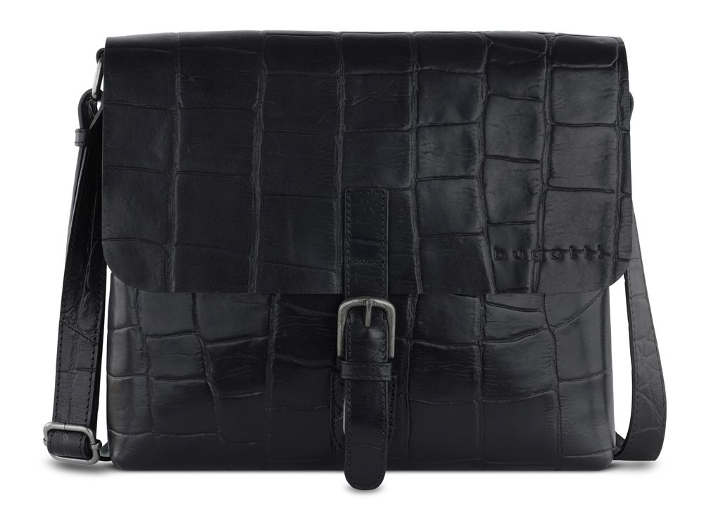 Сумка-мессенджер мужская BUGATTI НЕВИО | NEVIO, чёрная, воловья кожа/хлопок, 30,5х7х25 см, 5 л, 49592201