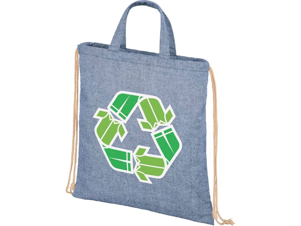 Рюкзак со шнурком Pheebs из 210 г/м2 переработанного хлопка, синий меланж, 12046050