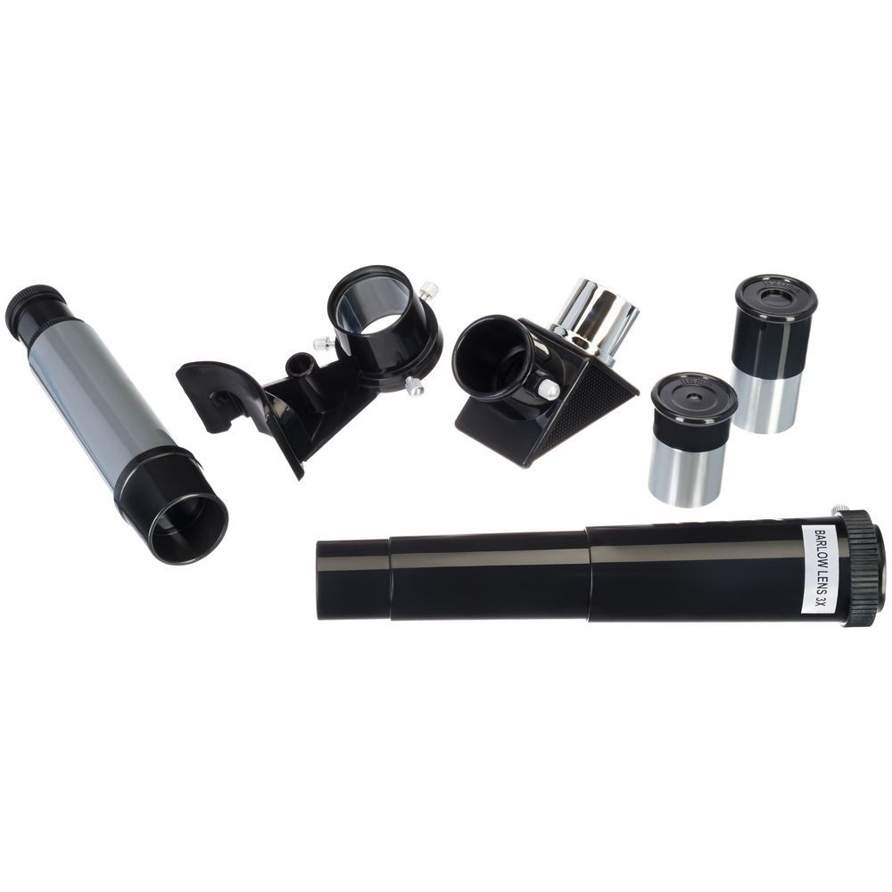 Телескоп собран по схеме ахроматического рефрактора из стеклянных линз с антибликовым покрытием. Телескоп подходит для изучения ярких объектов ночного неба, например, Луны. По наземным объектам прибор передает достойную по качеству картинку даже при слабой освещенности.