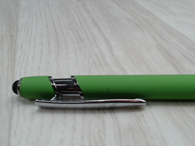 Ручка металлическая soft-touch шариковая со стилусом Sway, зеленое яблоко/серебристый (P), 18381.19p
