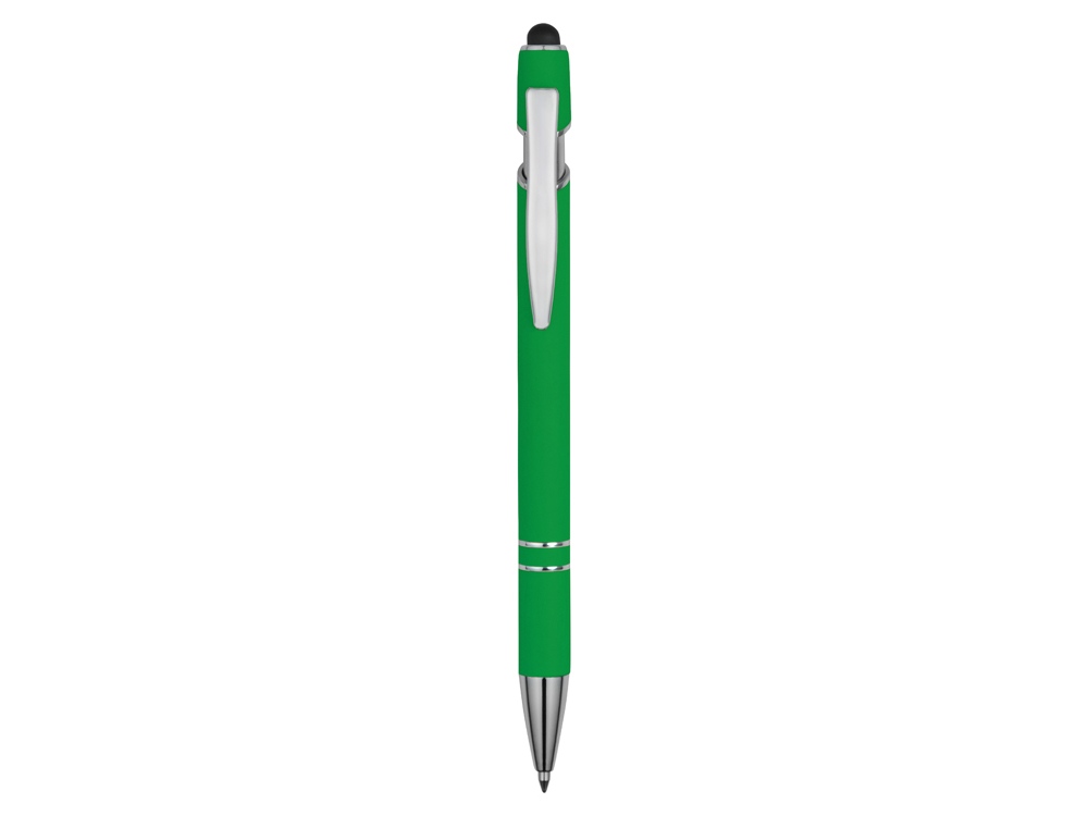 Ручка металлическая soft-touch шариковая со стилусом Sway, зеленый/серебристый (Р), 18381.03p