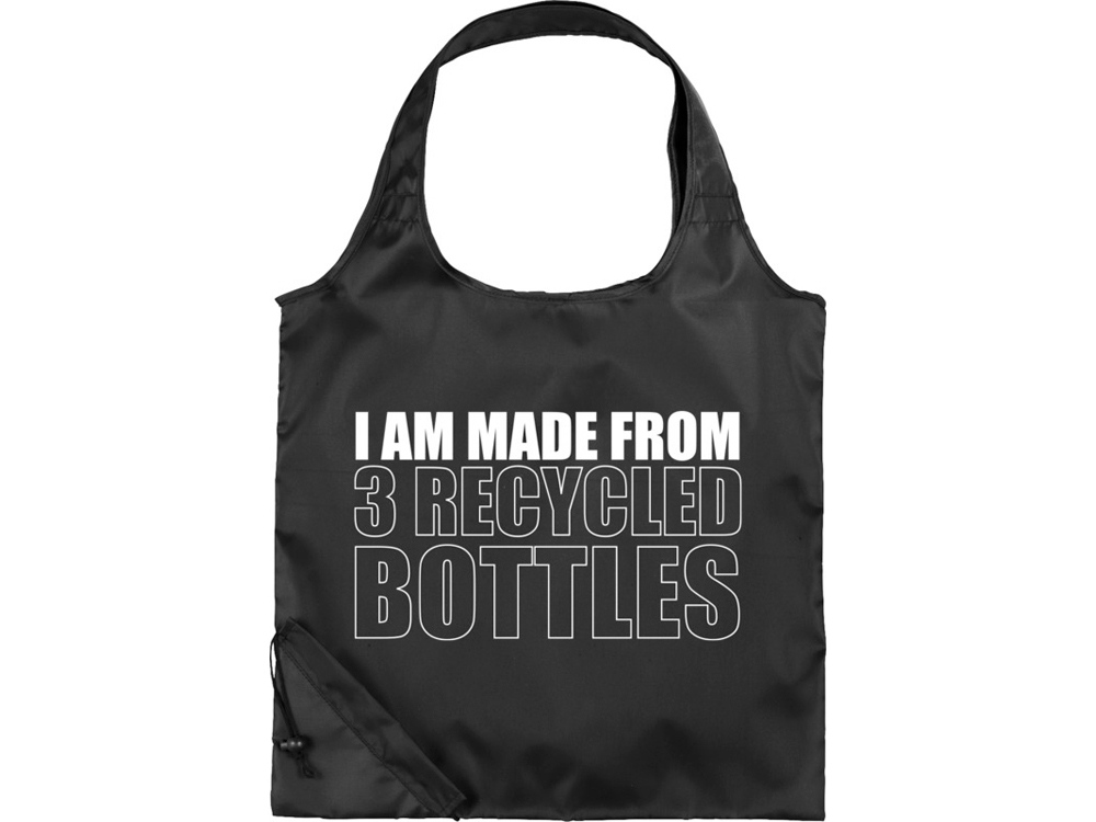 На одной из сторон сумки напечатан текст I am made from 3 recycled bottles.