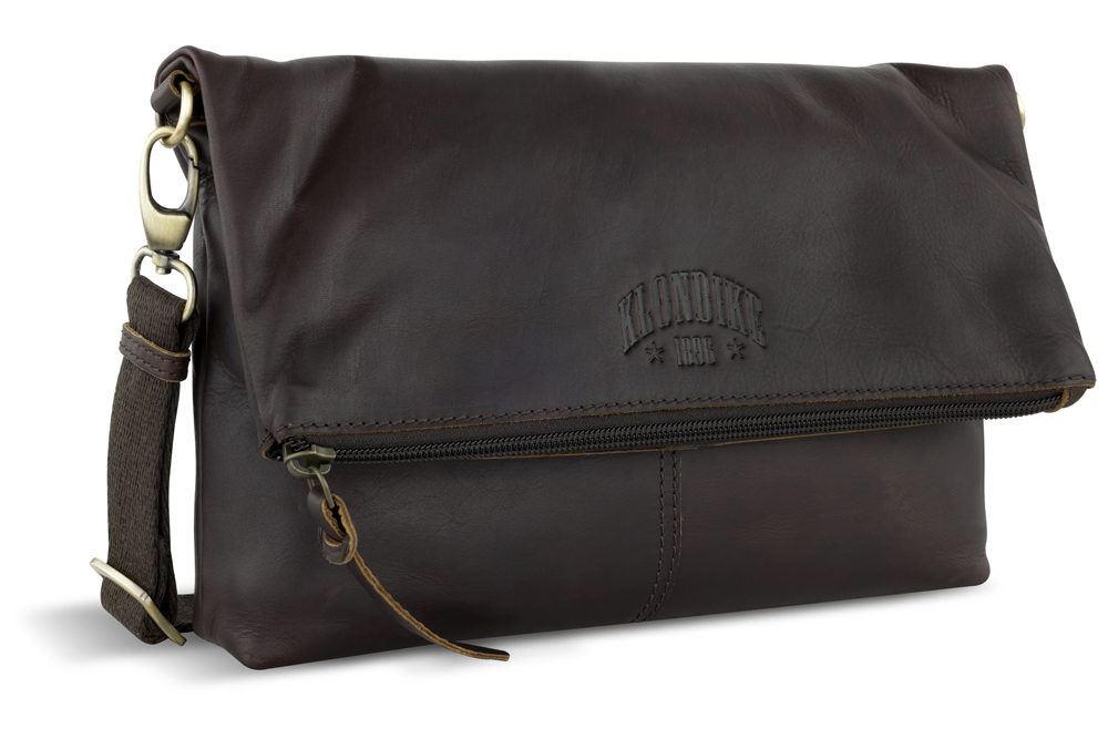 Сумка через плечо KLONDIKE RUSH «Jessica», натуральная кожа в темно-коричневом цвете 30х20/33х4,5 см, KD1312-03