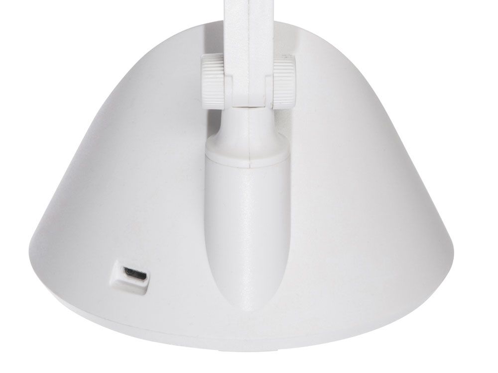 Светильник компактный, его можно зафиксировать в различных положениях. Имеет три режима освещения — теплый, нейтральный и холодный.