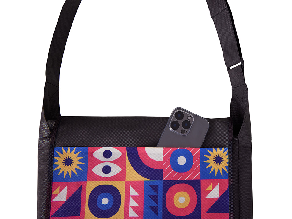 Для размещения принта подходит передний карман, на котором можно выполнить полноцветную печать. На поверхности кармана можно разместить лого компании или выставки, а также полноразмерный принт любой сложности.