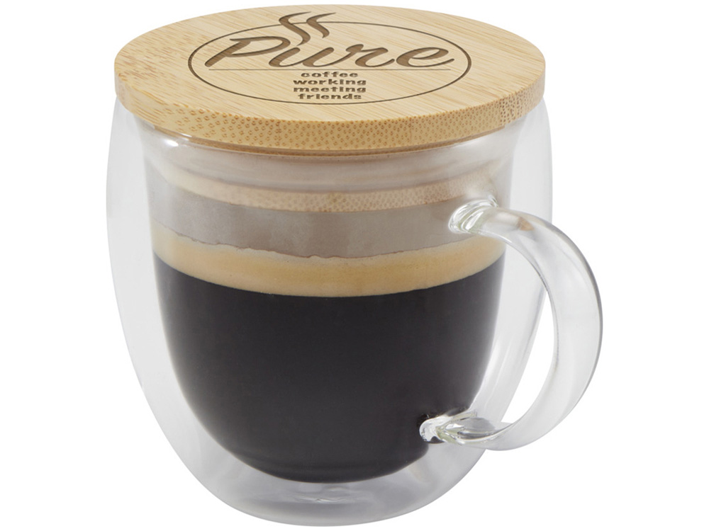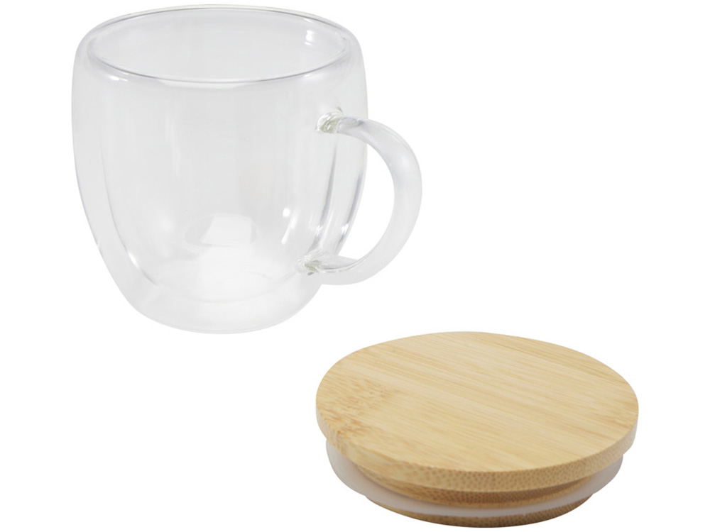 Стеклянная кружка Lenora емкостью 250 мл с бамбуковой крышкой - прозрачный, 11341901