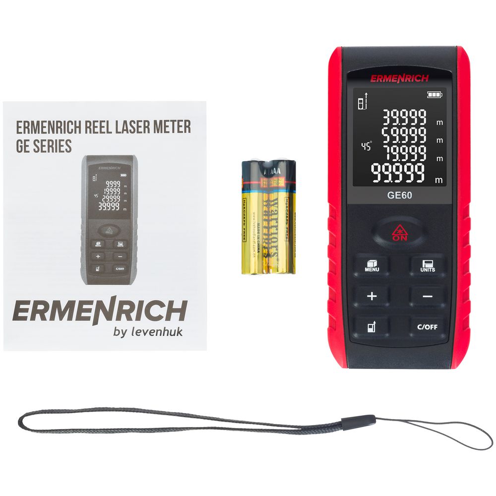 Ermenrich Reel GE60 — лазерная рулетка для самого широкого применения при измерении линейных размеров, площадей и объемов помещений, зданий и сооружений.