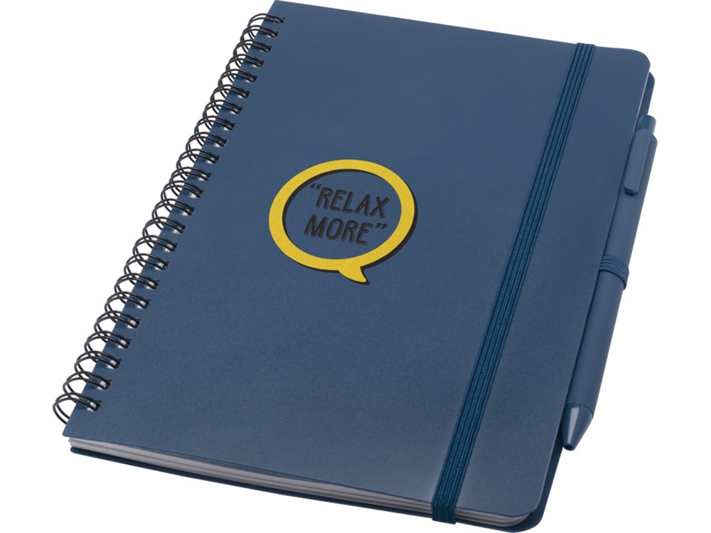 Блокнот Thalaasa формата А5 в твердой обложке из океанического пластика с шариковой ручкой - Синий, 10790151
