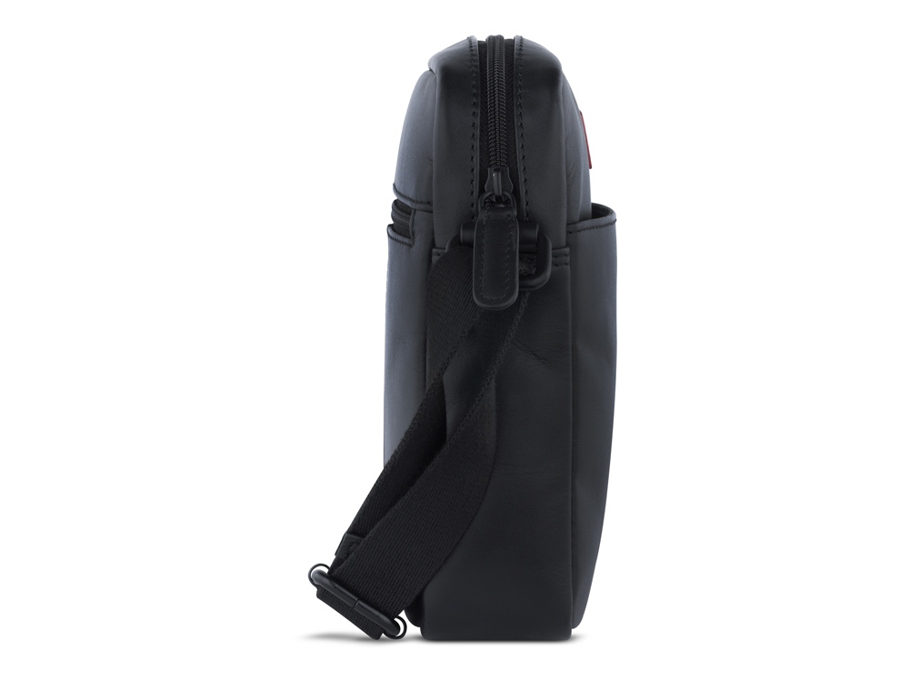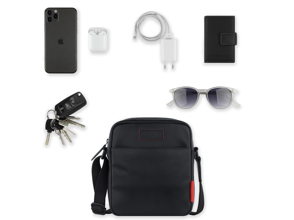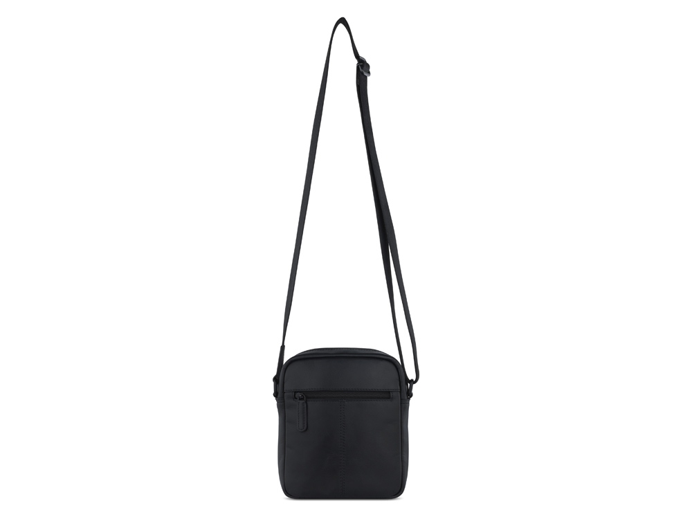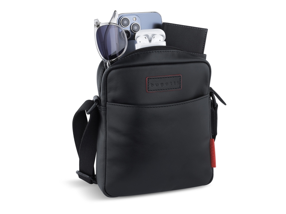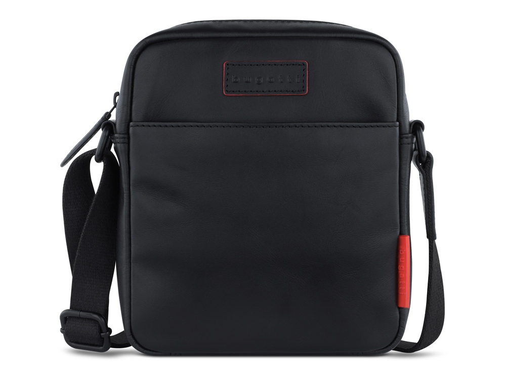 Сумка наплечная мужская BUGATTI КЛАРК | CLARK, чёрная, воловья кожа/полиэстер, 18х5,5х20 см, 2 л, 49235001