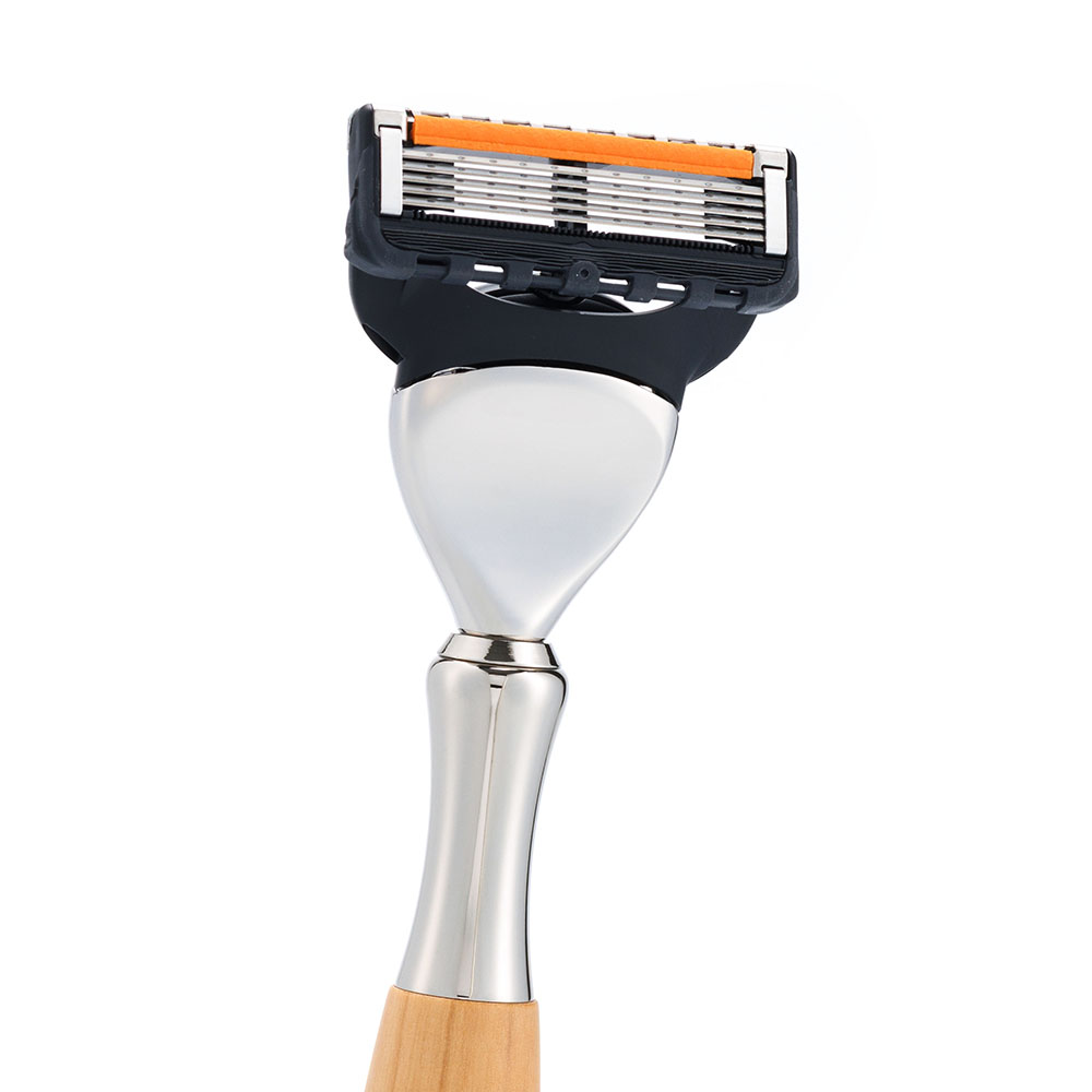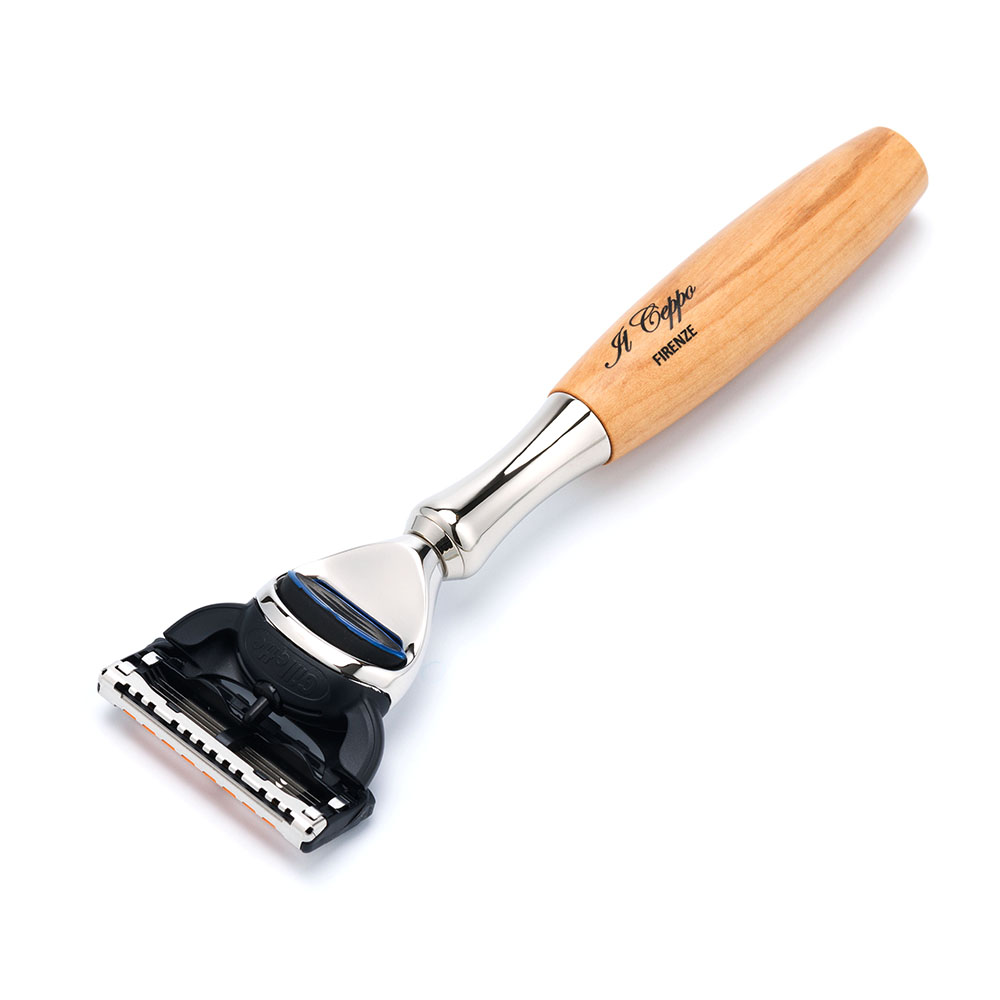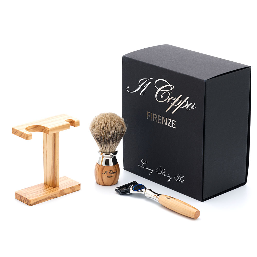 Бритвенный набор IL Ceppo: станок, помазок, подставка, оливковое дерево/никелированная латунь, FUSION, натуральный ворс барсука BEST BADGER, SET-S11461FT