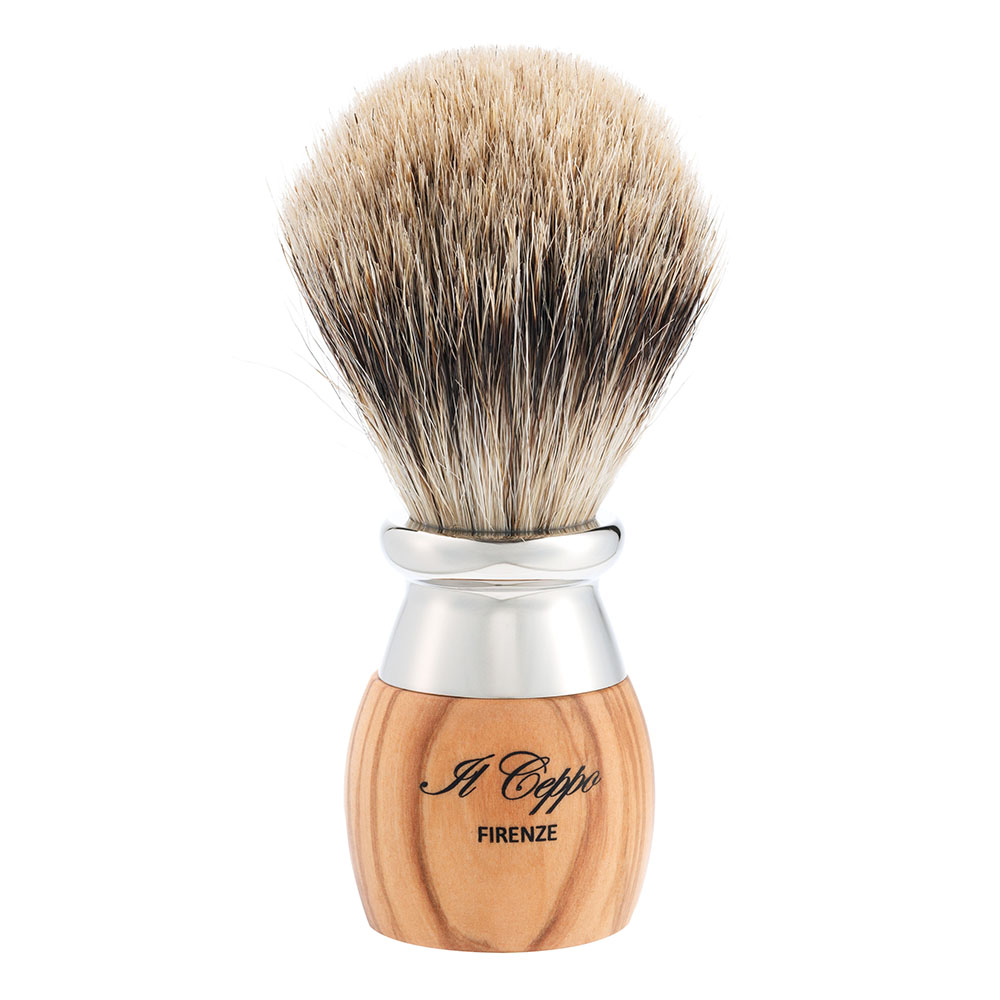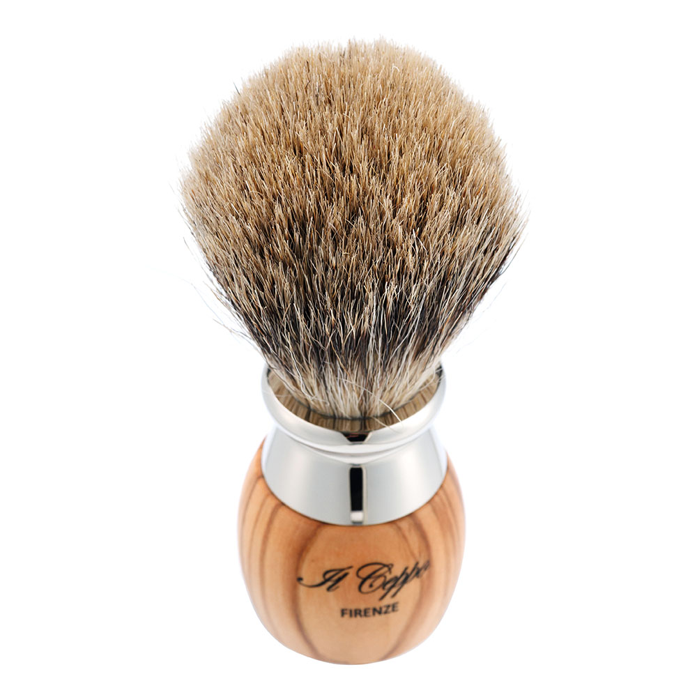 Оливковое дерево / ворс барсука / никелированная латунь |
