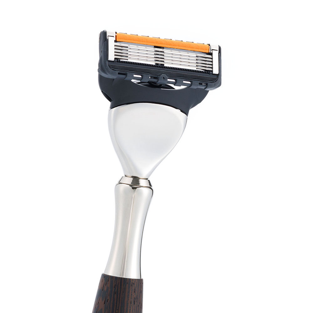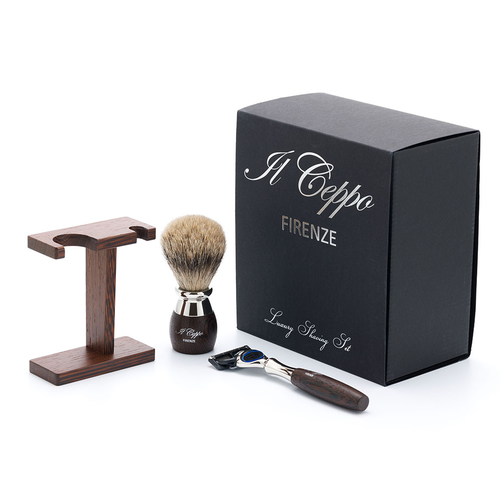 Бритвенный набор IL Ceppo:станок, помазок, подставка, венге/никелированная латунь, FUSION, натуральный ворс барсука BEST BADGER, размер узла M (22 мм), SET-S11360FT