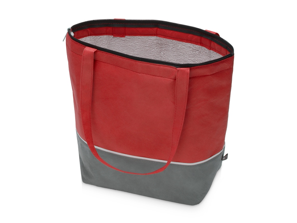 Сумка-холодильник Reviver с длинными ручками из нетканого переработанного материала RPET, красный/серый, 590501
