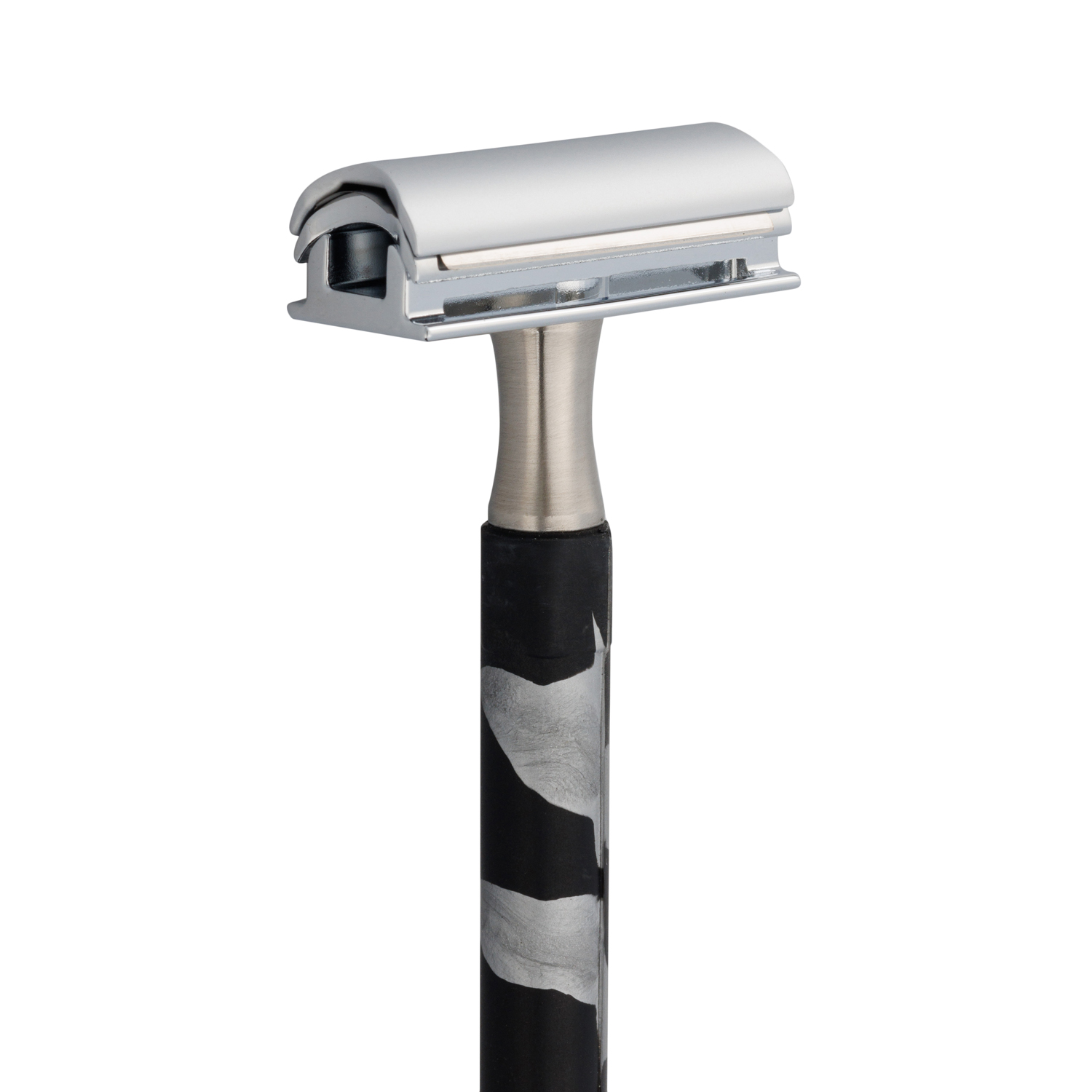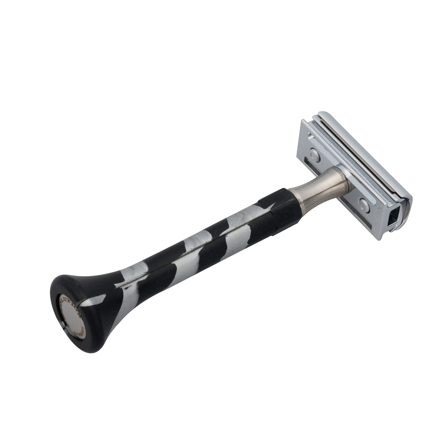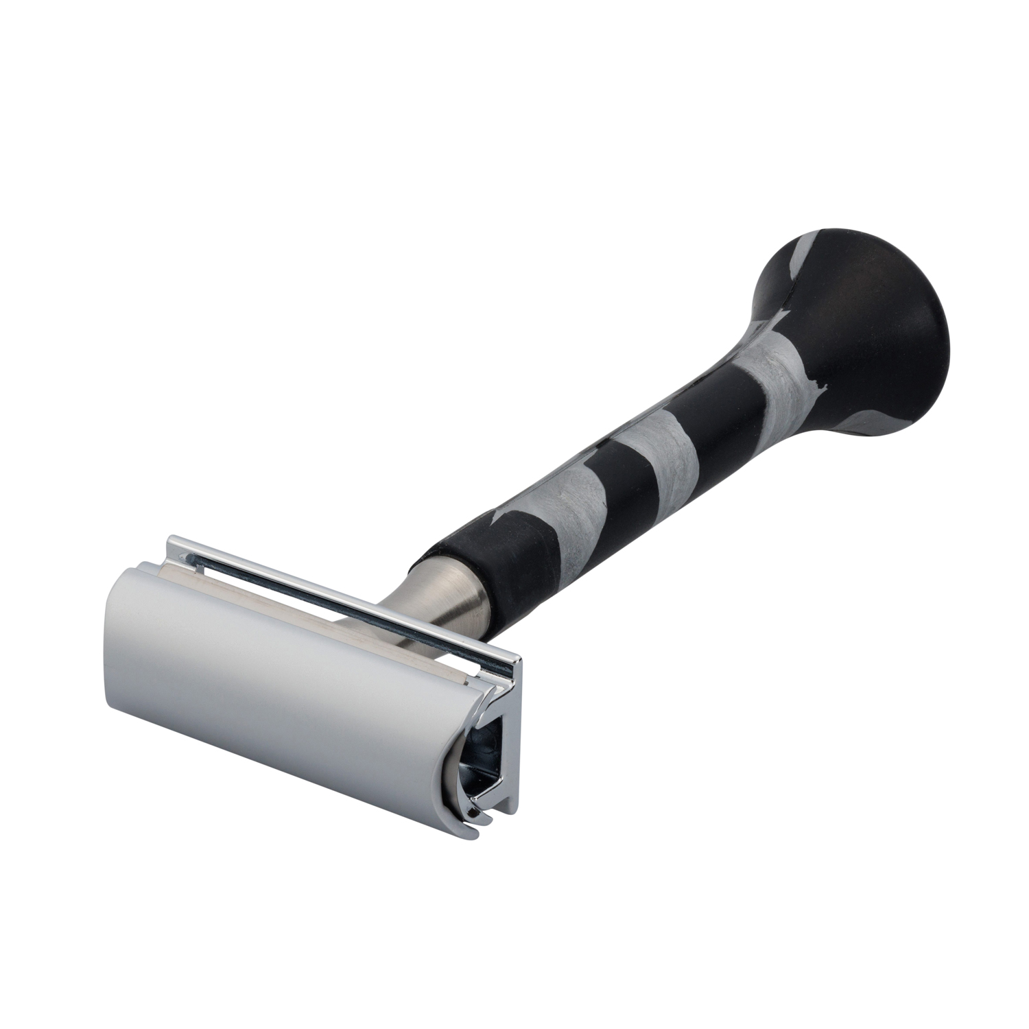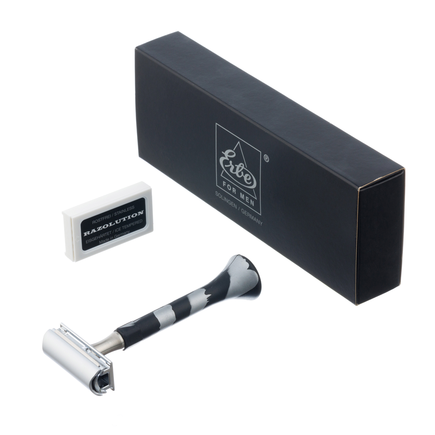 Станок Т-образный для бритья ERBE с двумя лезвиями, нержавеющая сталь, хромированное покрытие, силикон, серебристый/черный цвет, в картонной коробке, 6486