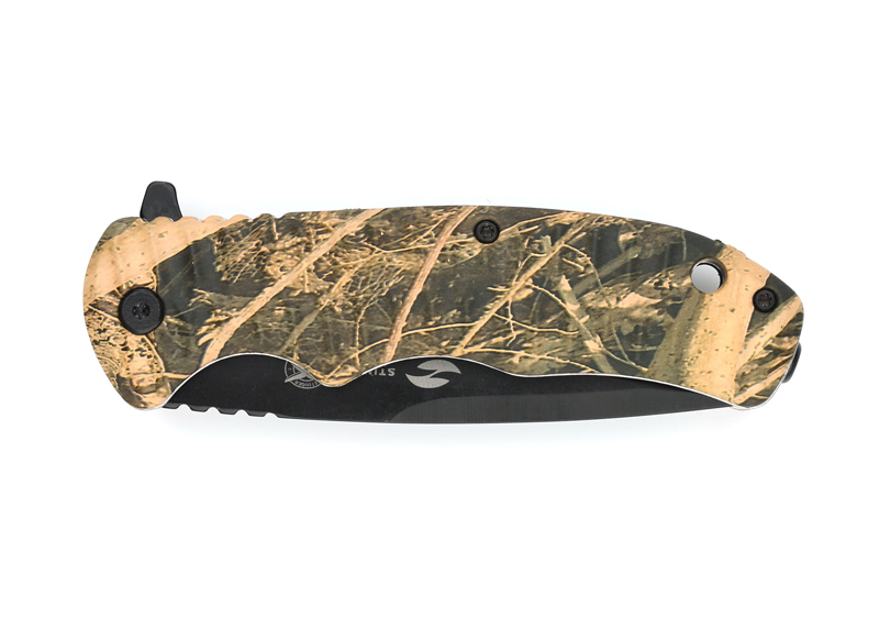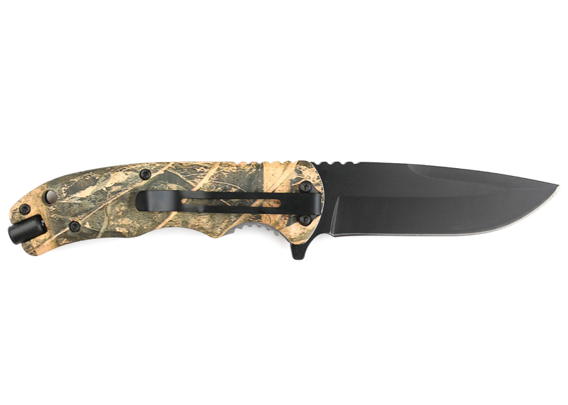 Нож складной Stinger, 92 мм, (чёрный), материал рукояти: пластик (жёлто-зелёный камуфляж), FK-C052