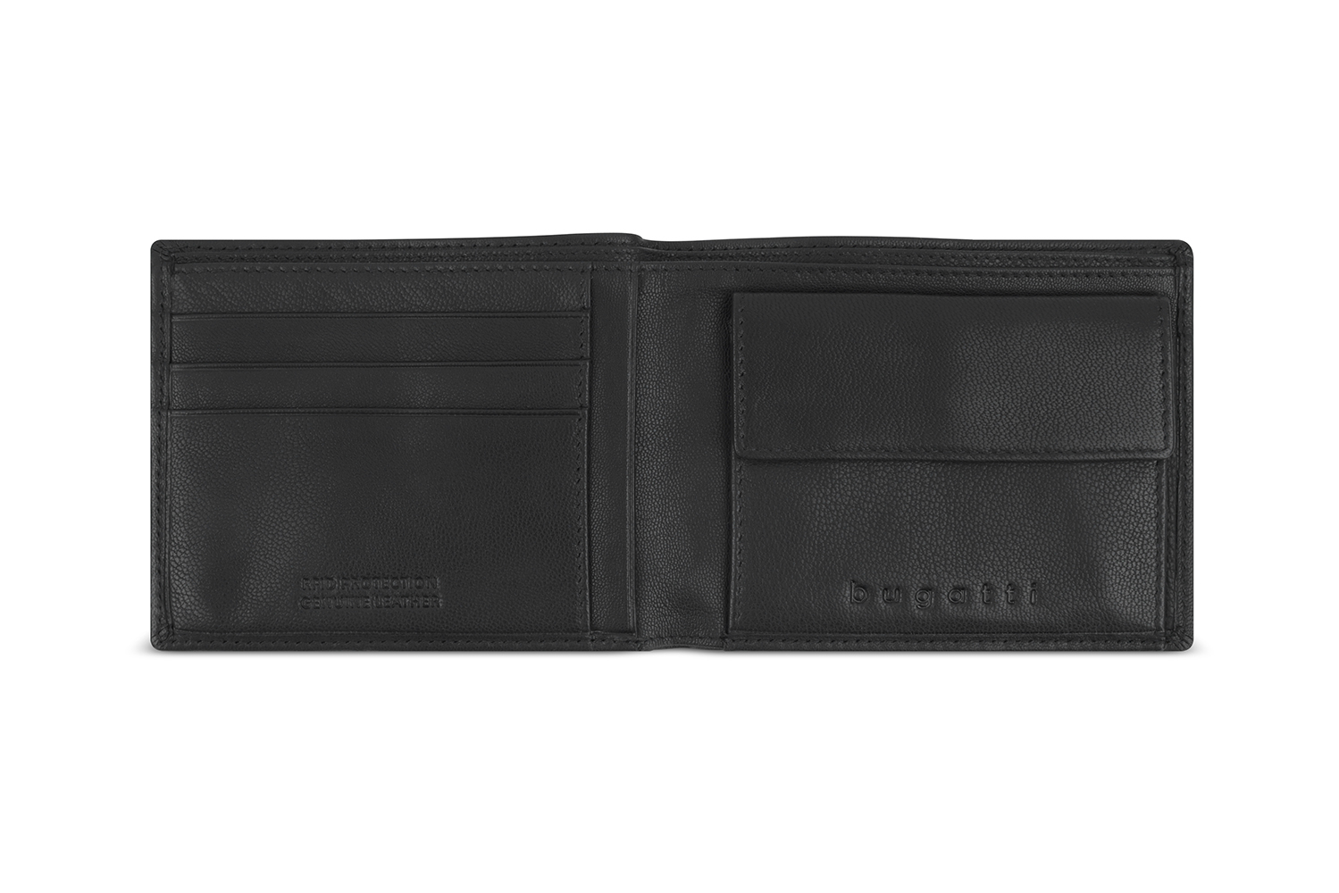 Портмоне BUGATTI ЧЕРНАЯ МАГИЯ | BLACK MAGIC, с защитой данных RFID, черное, натуральная кожа козы, 11,5х2х9 см, 49123801