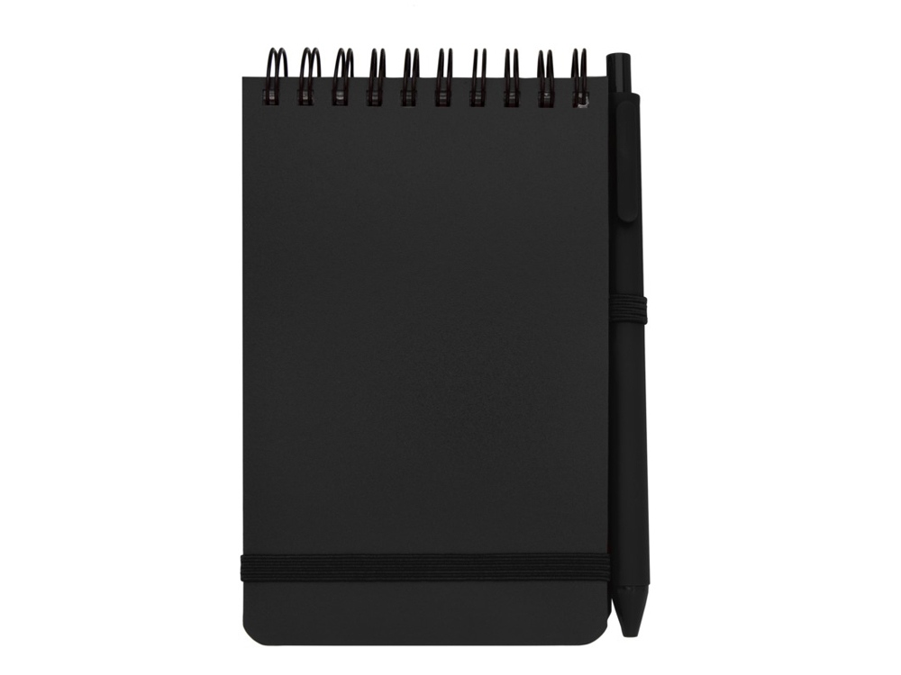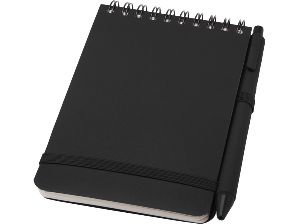 Блокнот Thalaasa формата А6 в твердой обложке из океанического пластика с шариковой ручкой - сплошной черный, 10790290