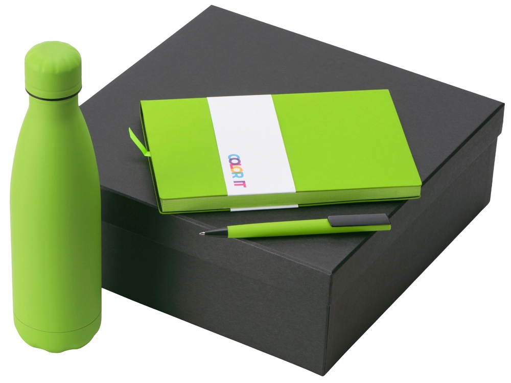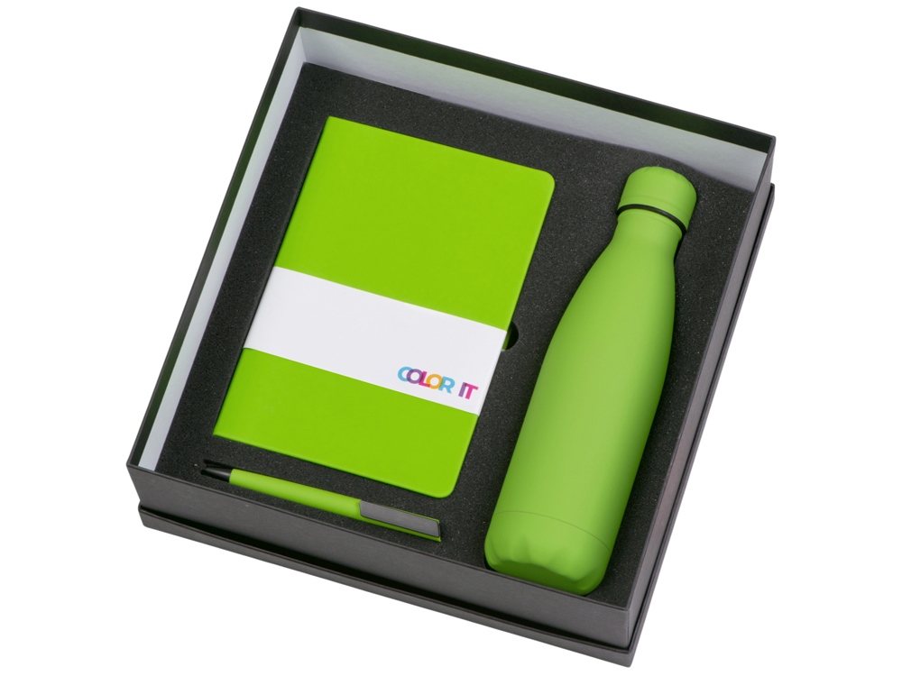 Подарочный набор c блокнотом C1, ручкой и термобутылкой, зеленое яблоко , размер гибкая обложка, 209776