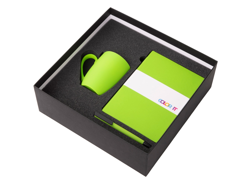 Подарочный набор c блокнотом C1, ручкой и кружкой, зеленое яблоко , размер гибкая обложка, 209799