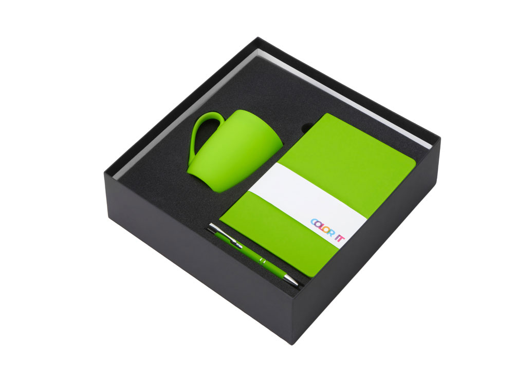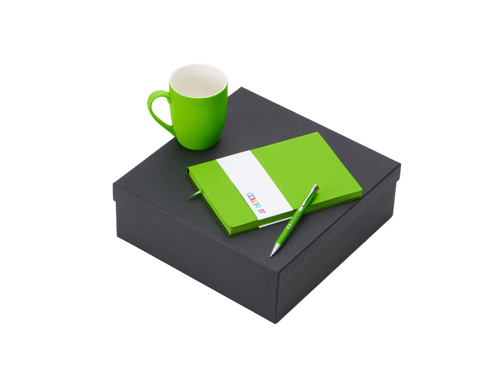 Подарочный набор с блокнотом С1, металлической ручкой и кружкой, зеленое яблоко , размер гибкая обложка, 350091.03