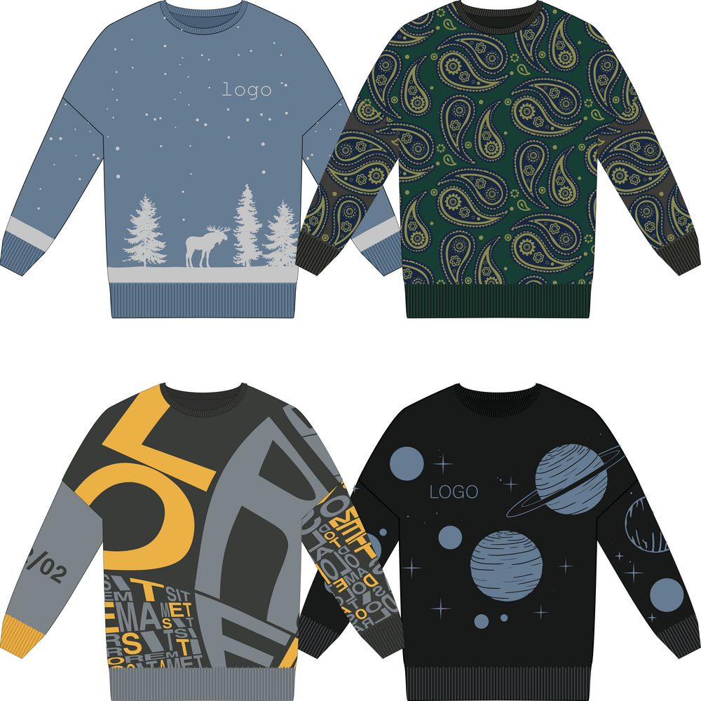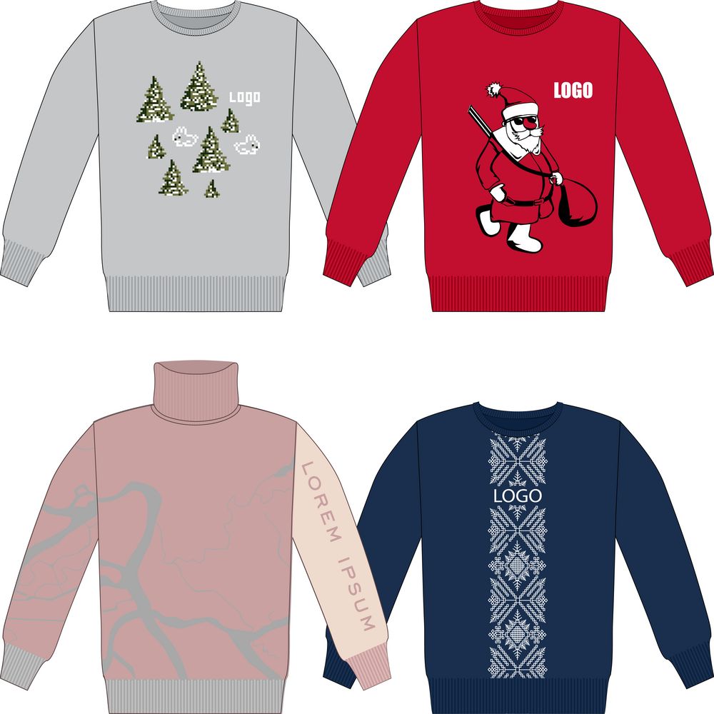 — Свитеры с логотипом из качественного трикотажа (акрил, шерсть, хлопок, смесовые ткани) — тёплые, мягкие, с аккуратной посадкой