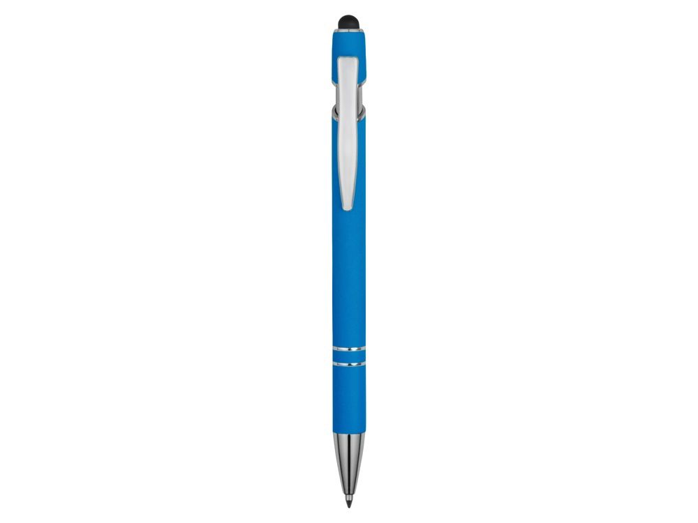 Ручка металлическая soft-touch шариковая со стилусом Sway, голубой/серебристый, 18381.10