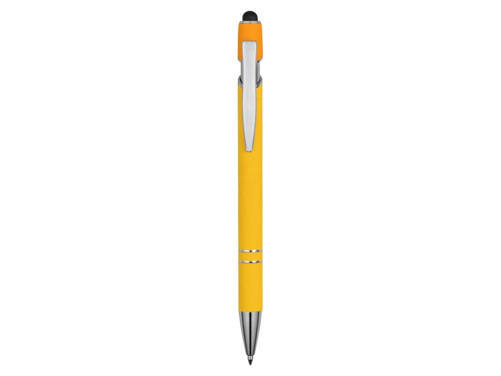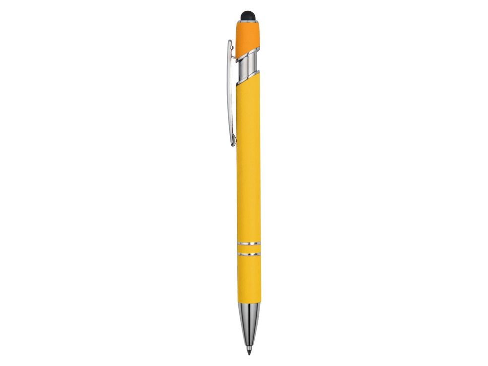 Ручка металлическая soft-touch шариковая со стилусом Sway, желтый/серебристый, 18381.04