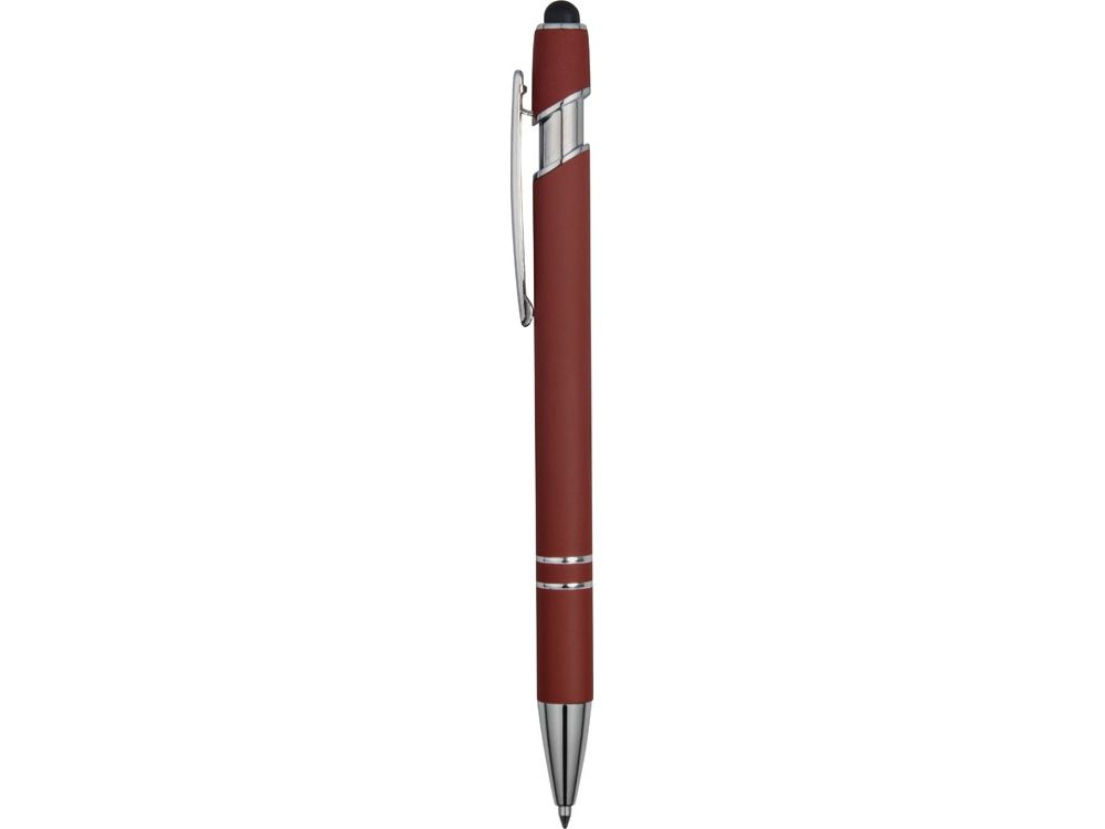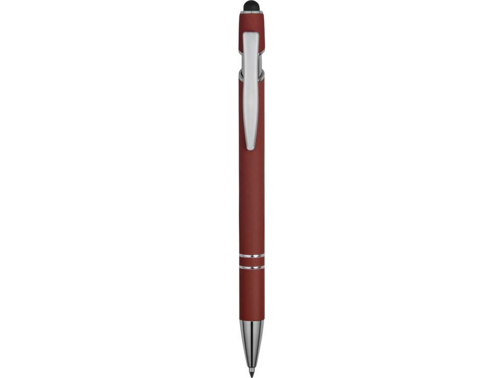 Ручка металлическая soft-touch шариковая со стилусом Sway, темно-красный/серебристый, 18381.11