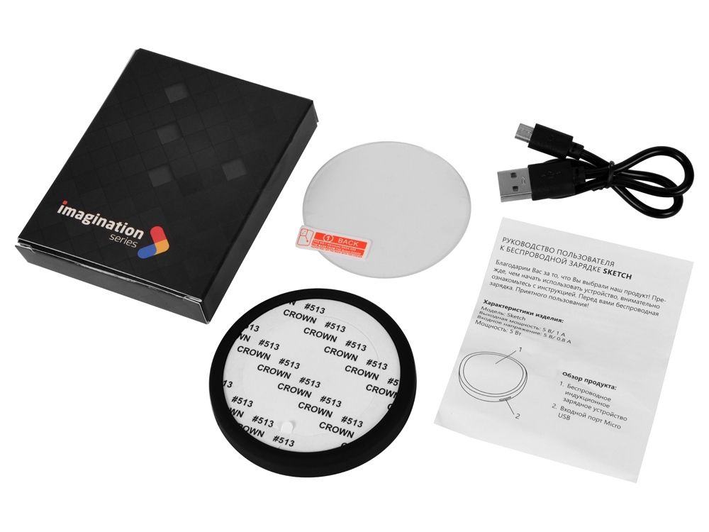 Беспроводное зарядное устройство Sketch с полноцветной печатью, черный, 5910947