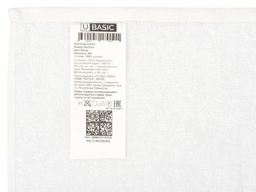 Полотенце Cotty S, 380, белый , размер S, 864606