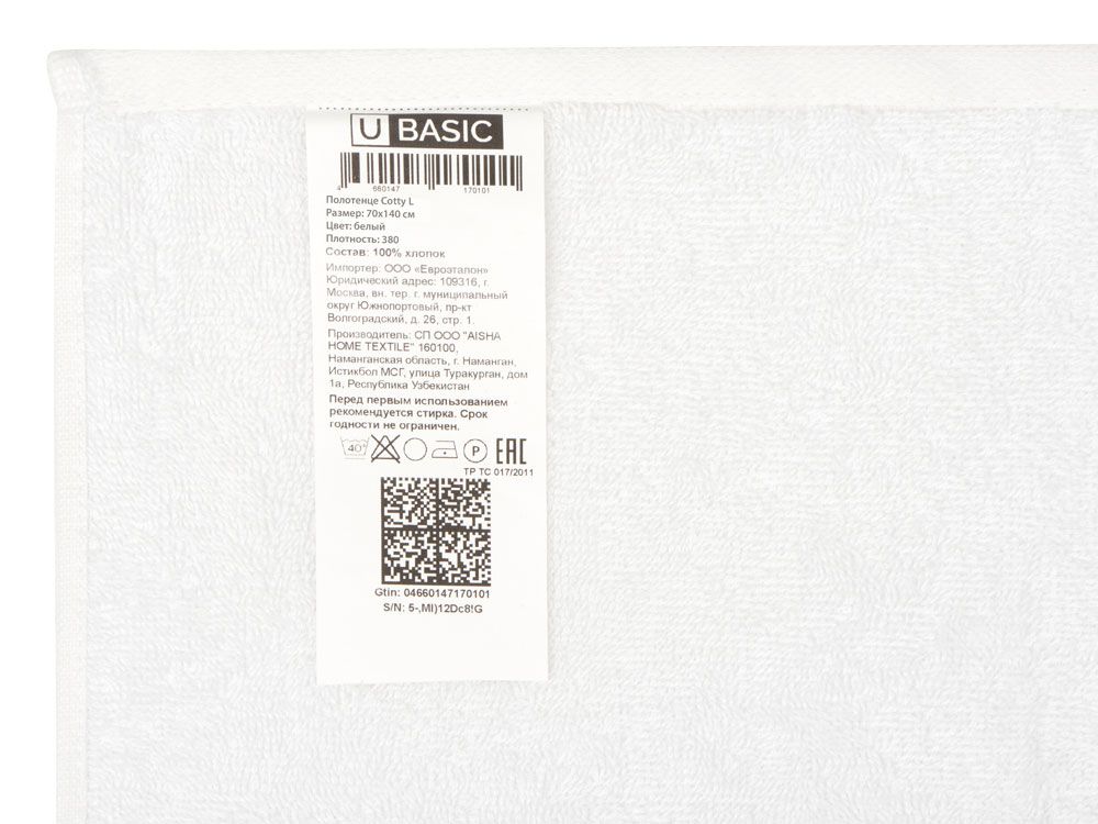 Полотенце Cotty L, 380, белый , размер L, 864626