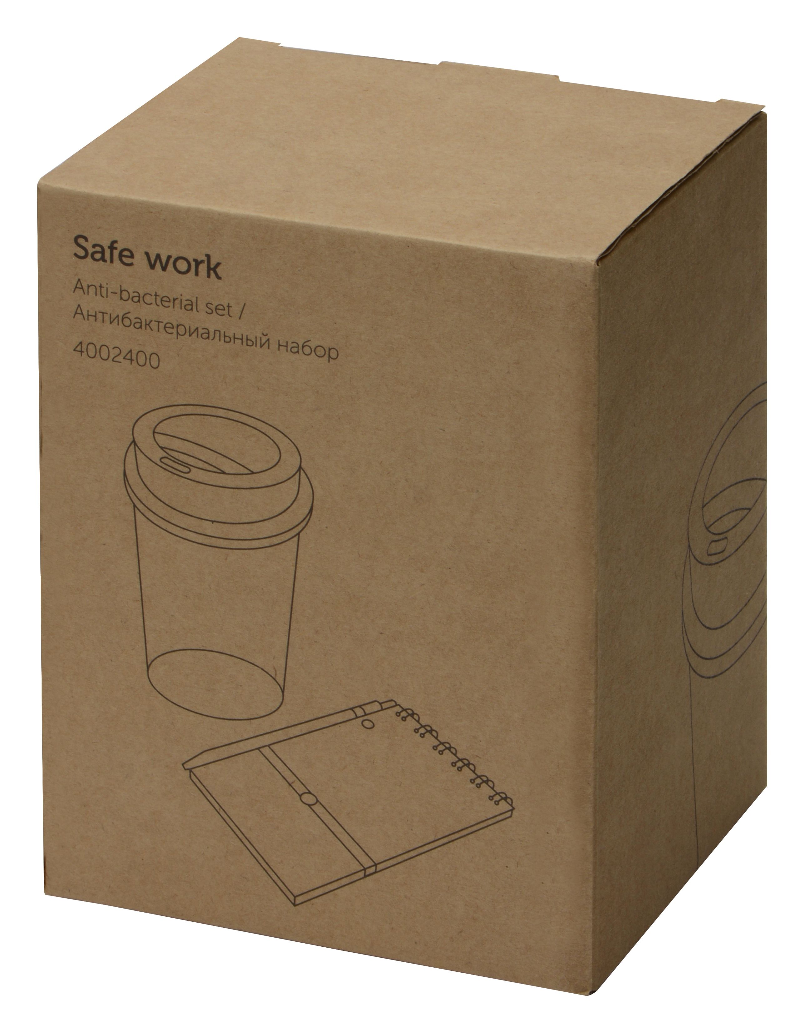 Антибактериальный набор с блокнотом и стаканом Safe work, белый, 4002400
