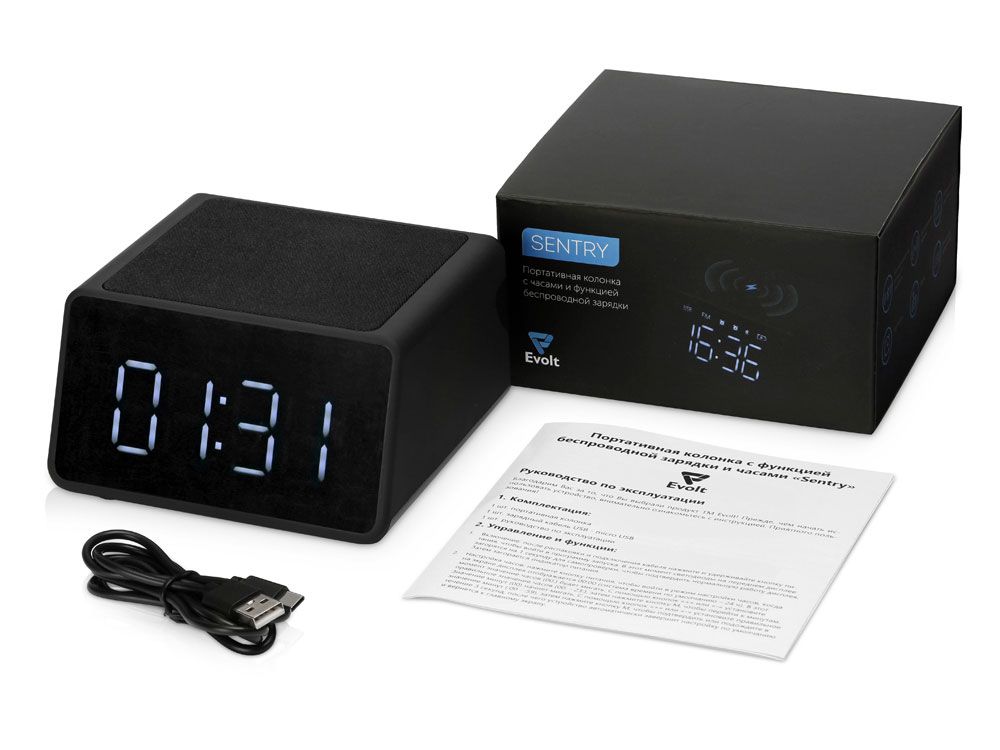 Беспроводная колонка с часами и функцией беспроводной зарядки Sentry, черный, 975700