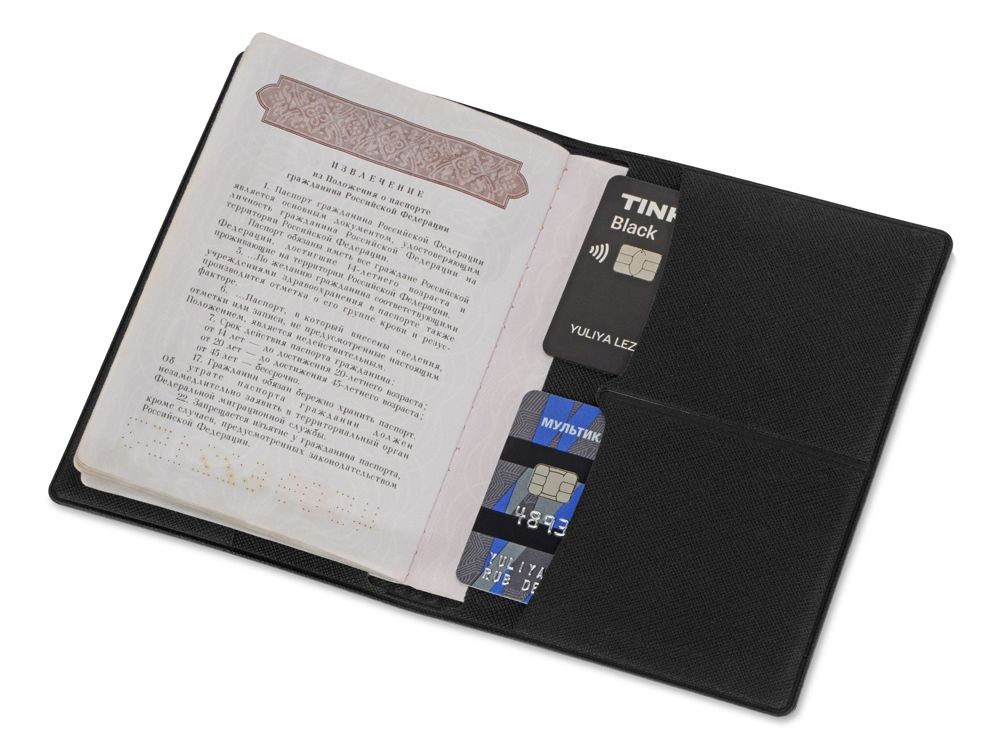 Обложка для паспорта с RFID защитой отделений для пластиковых карт Favor, черная, 113407