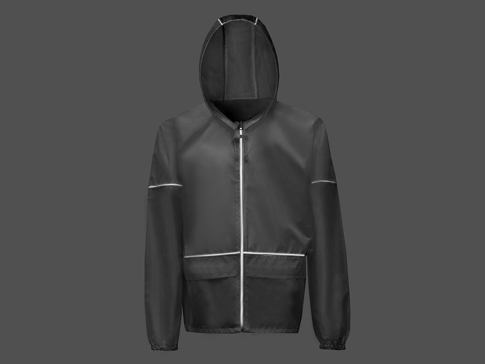 Капюшон и низ дождевика затягиваются на шнурки с фиксаторами, что позволяет отрегулировать посадку по фигуре. Манжеты дождевика — на резинке.