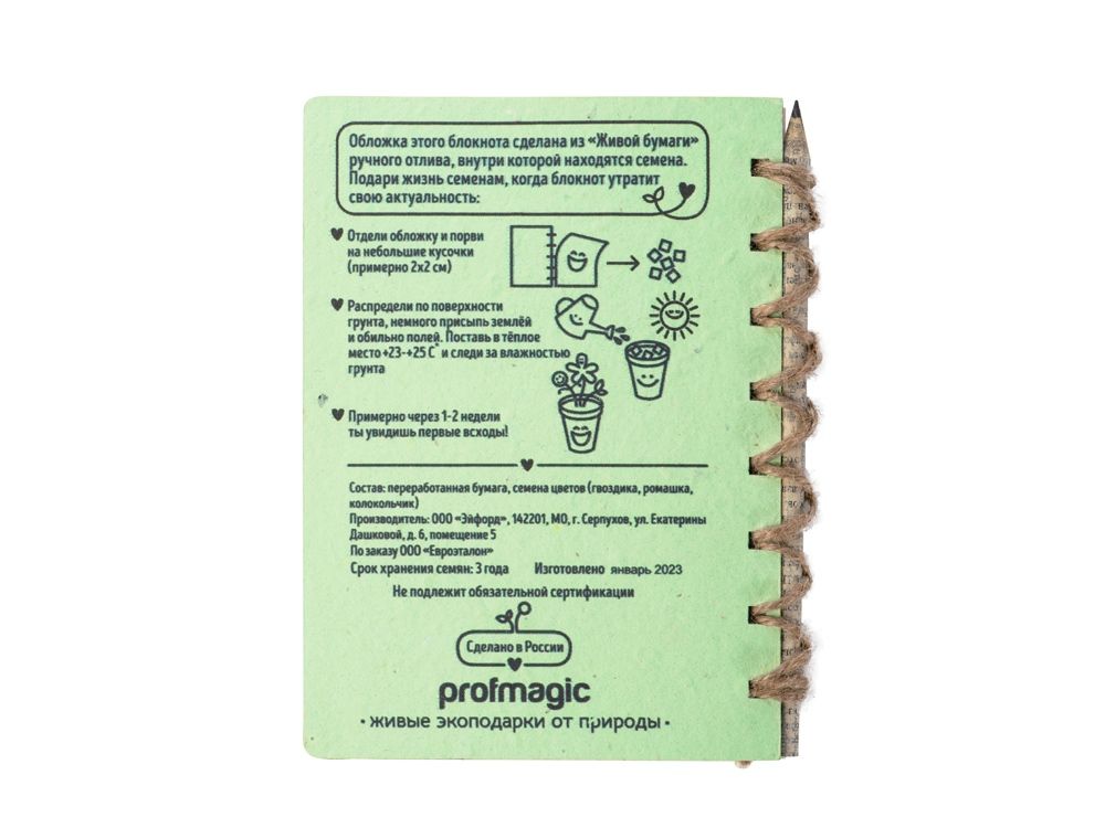 Живой блокнот с семенами цветов, А6, зеленое яблоко , размер A6, 220203