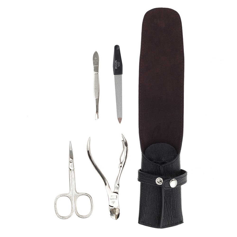 Маникюрный набор DEWAL серии "FOR MEN", 4пр. Футляр: натуральная кожа, цвет черный, 1762MEN-M