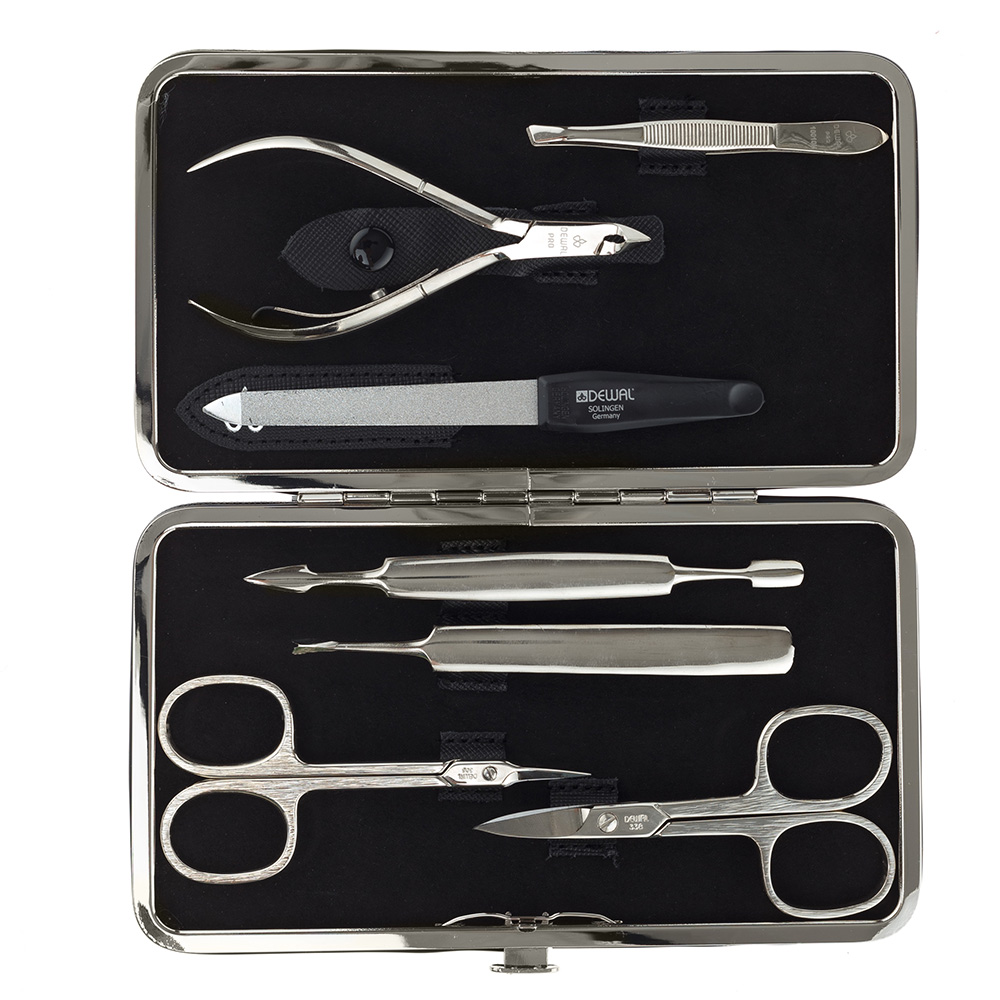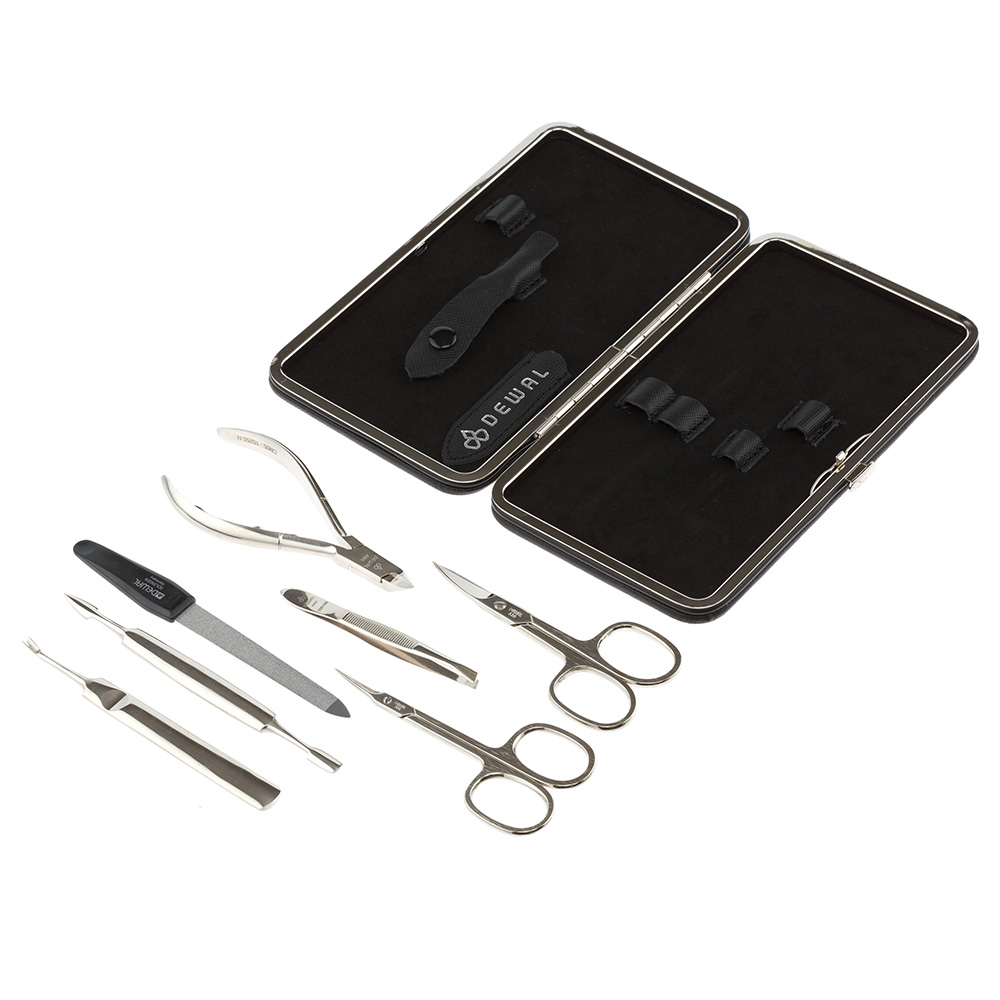 Маникюрный набор DEWAL, 7пр. Футляр: натуральная кожа, цвет черный, 905BLACK