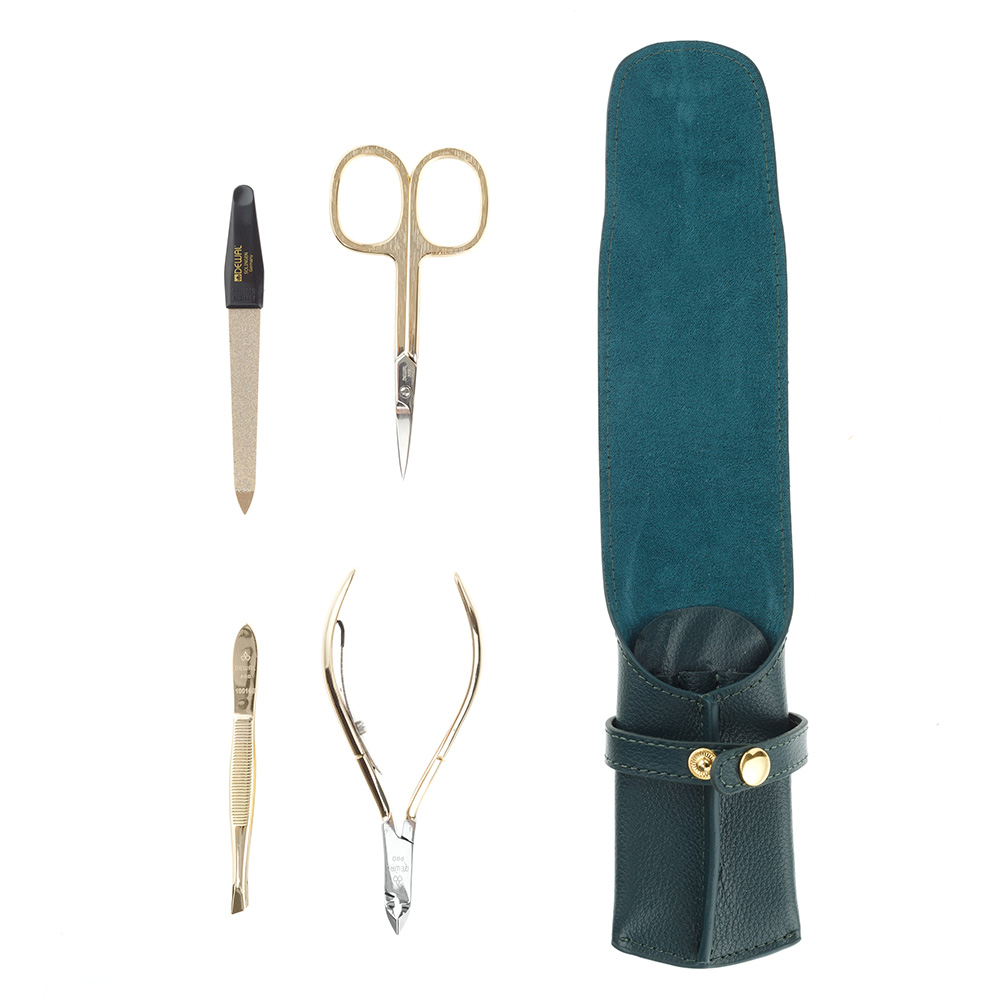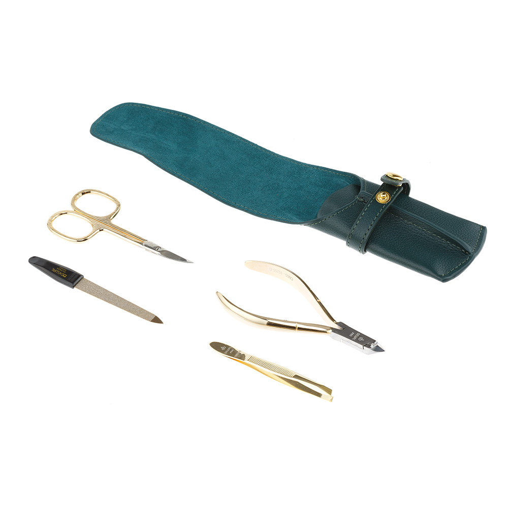 Маникюрный набор DEWAL, 4пр. Футляр: натуральная кожа, цвет зеленый, 901GREEN