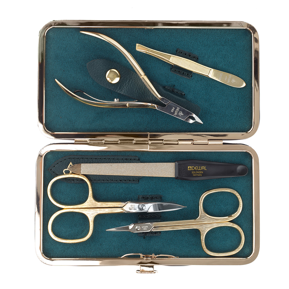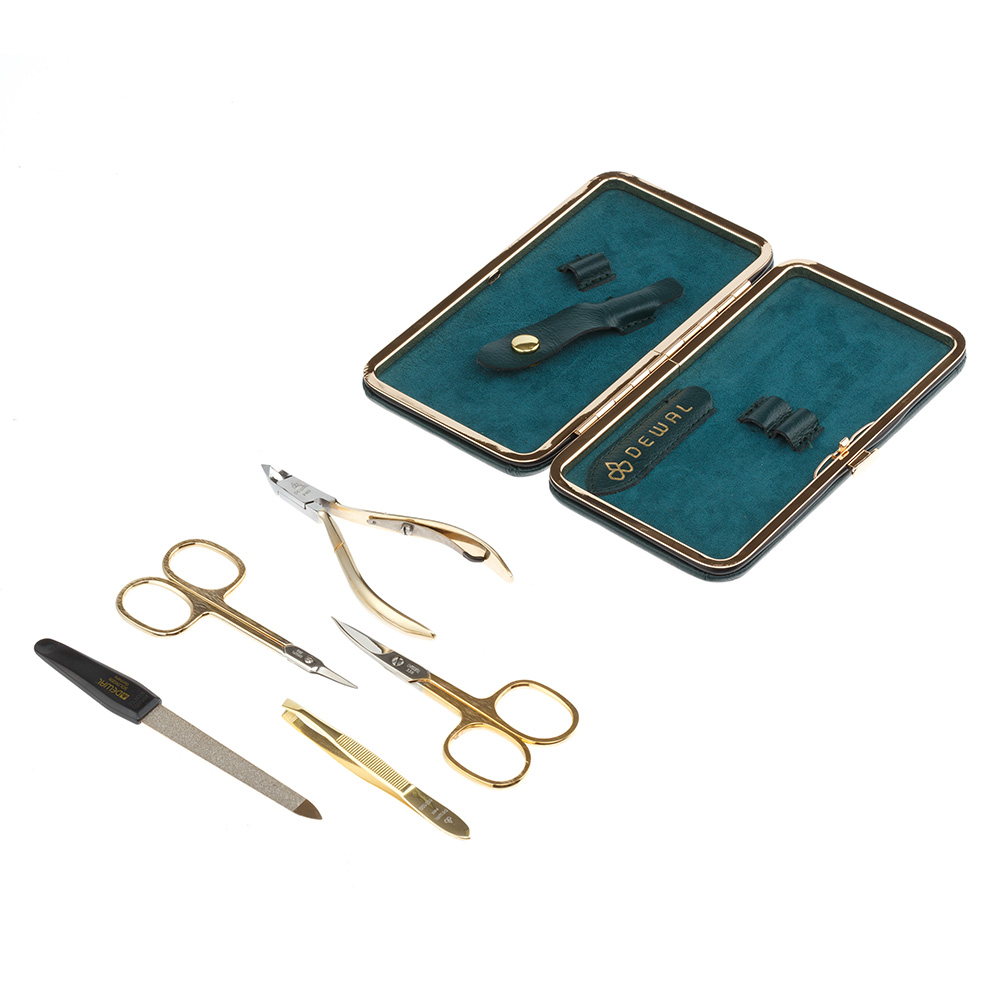 Маникюрный набор DEWAL, 5пр. Футляр: натуральная кожа, цвет зеленый, 903GREEN