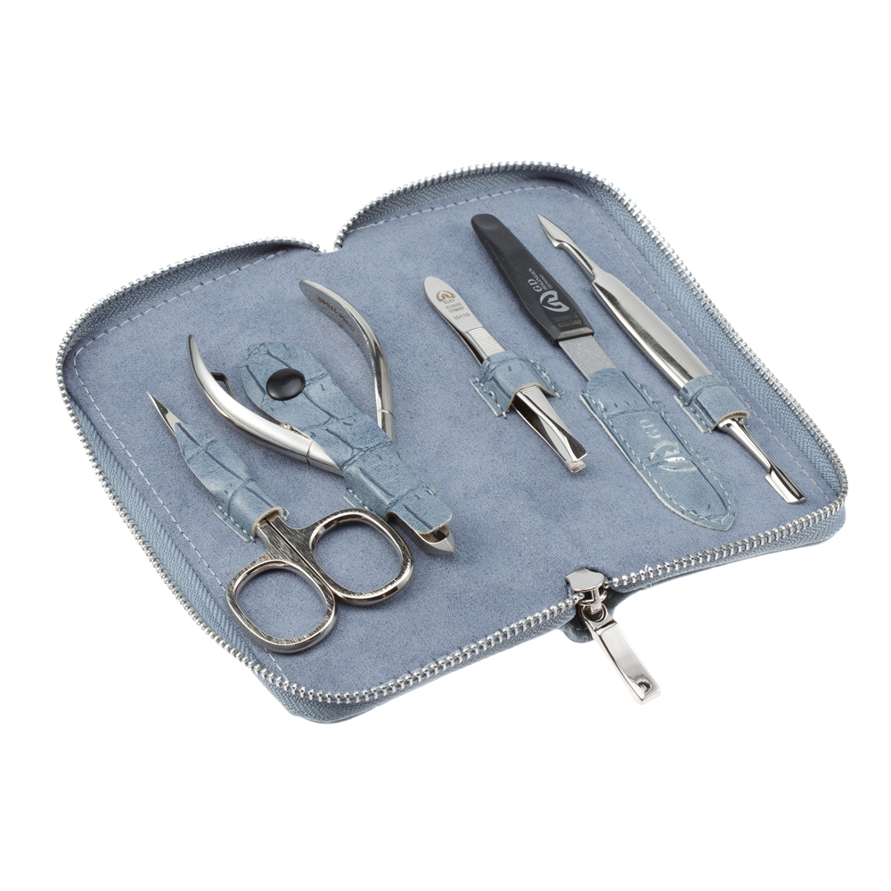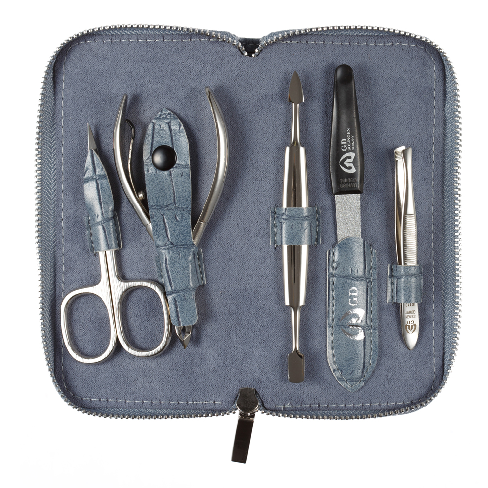 Маникюрный набор GD, 5 пр. Футляр: искусcтвенная кожа, цвет серо-голубой, 2153GBCR