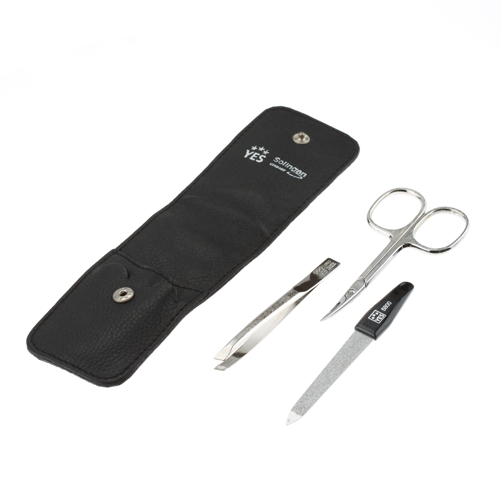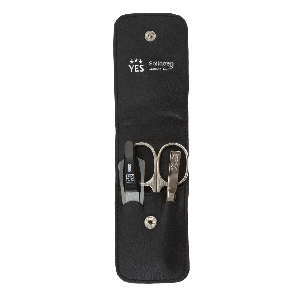 Маникюрный набор YES, 3 пр. Футляр: натуральная кожа, цвет черный, 9018