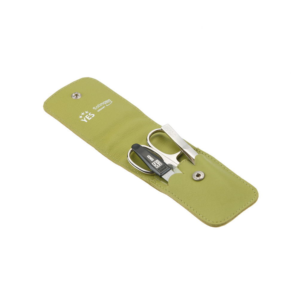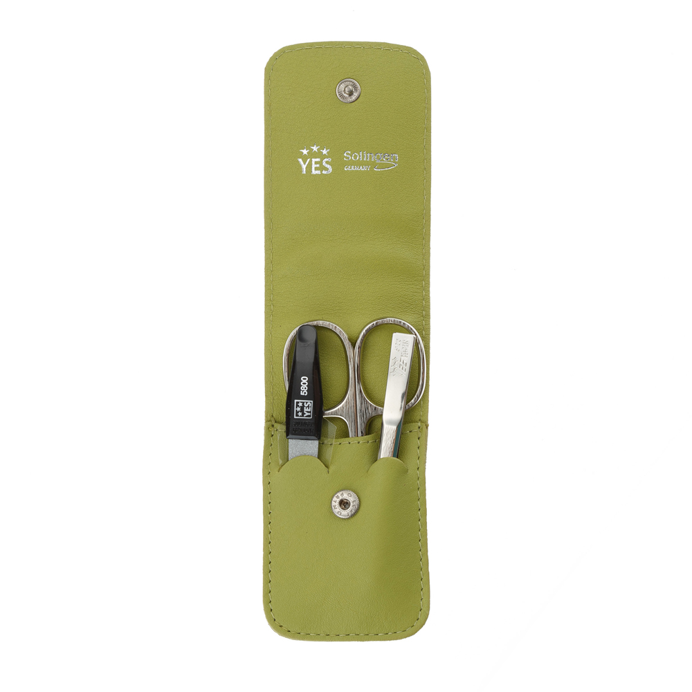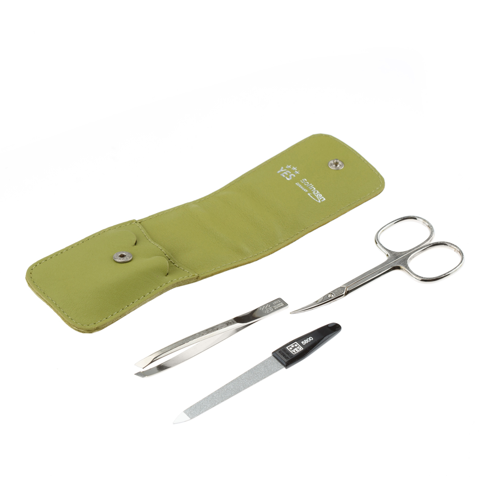 Маникюрный набор YES, 3 пр. Футляр: натуральная кожа, цвет зеленый, 9026