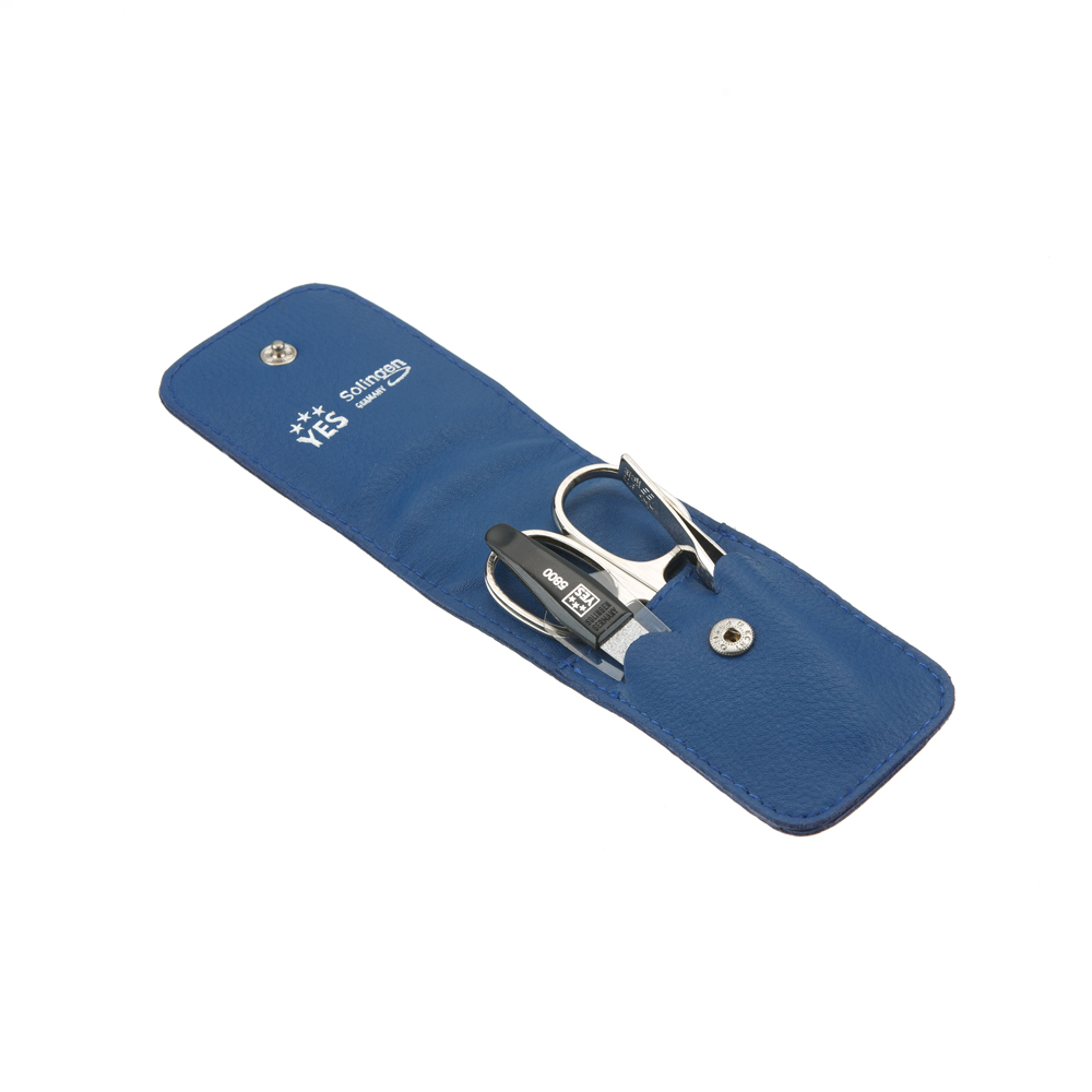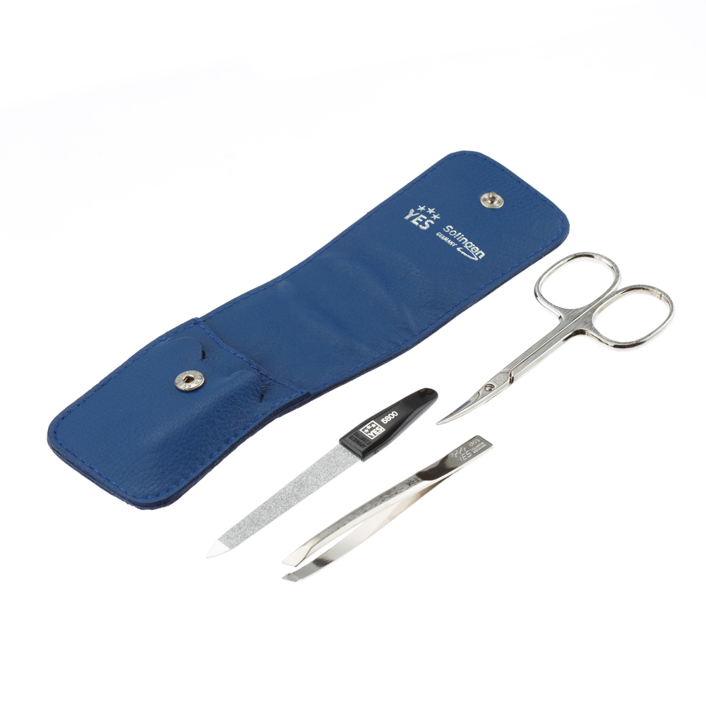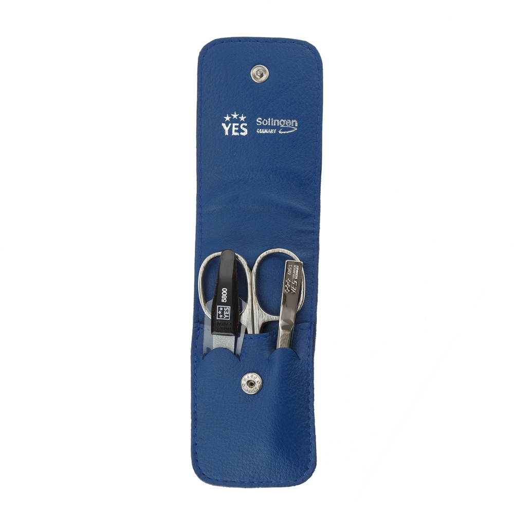 Маникюрный набор YES, 3 пр. Футляр: натуральная кожа, цвет синий, 9071