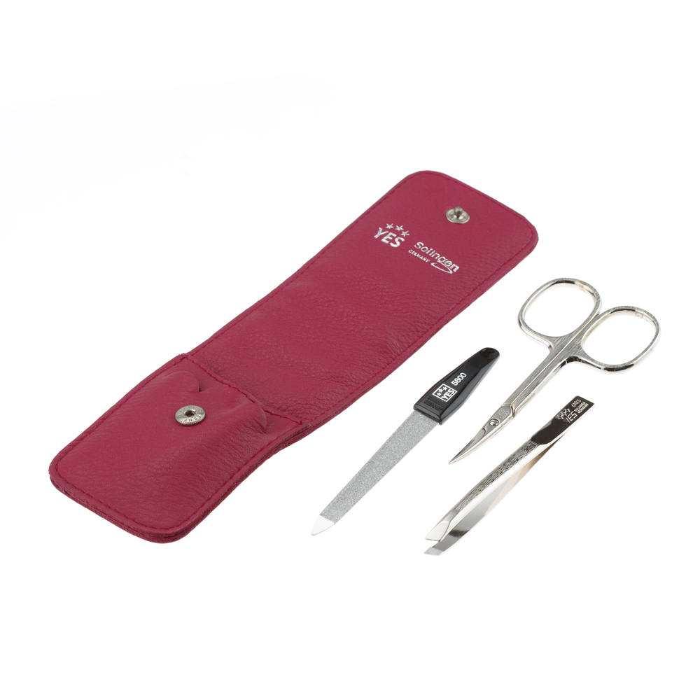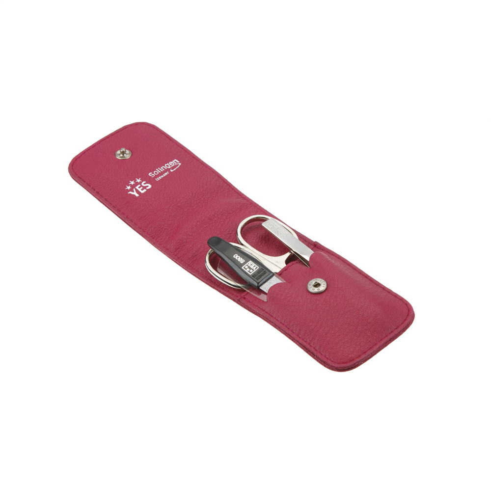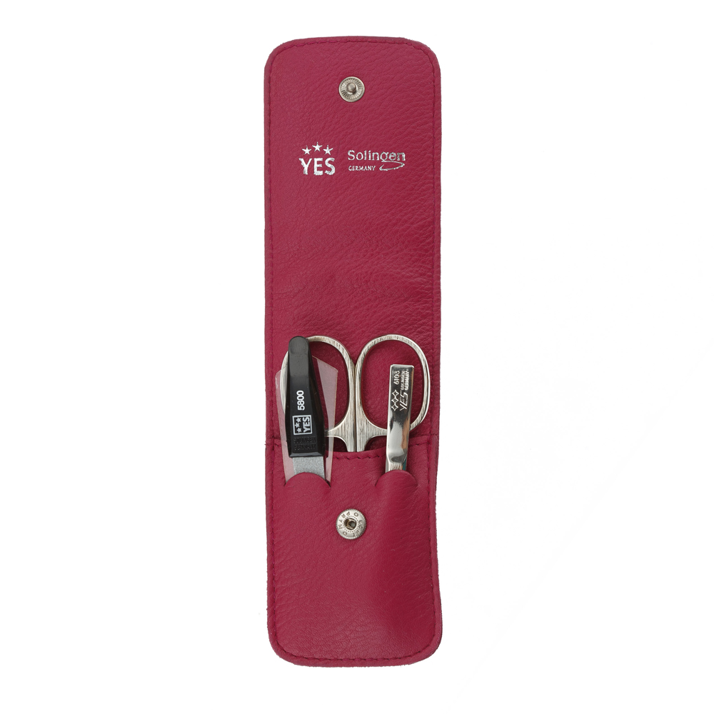 Маникюрный набор YES, 3 пр. Футляр: натуральная кожа, цвет розовый, 9079