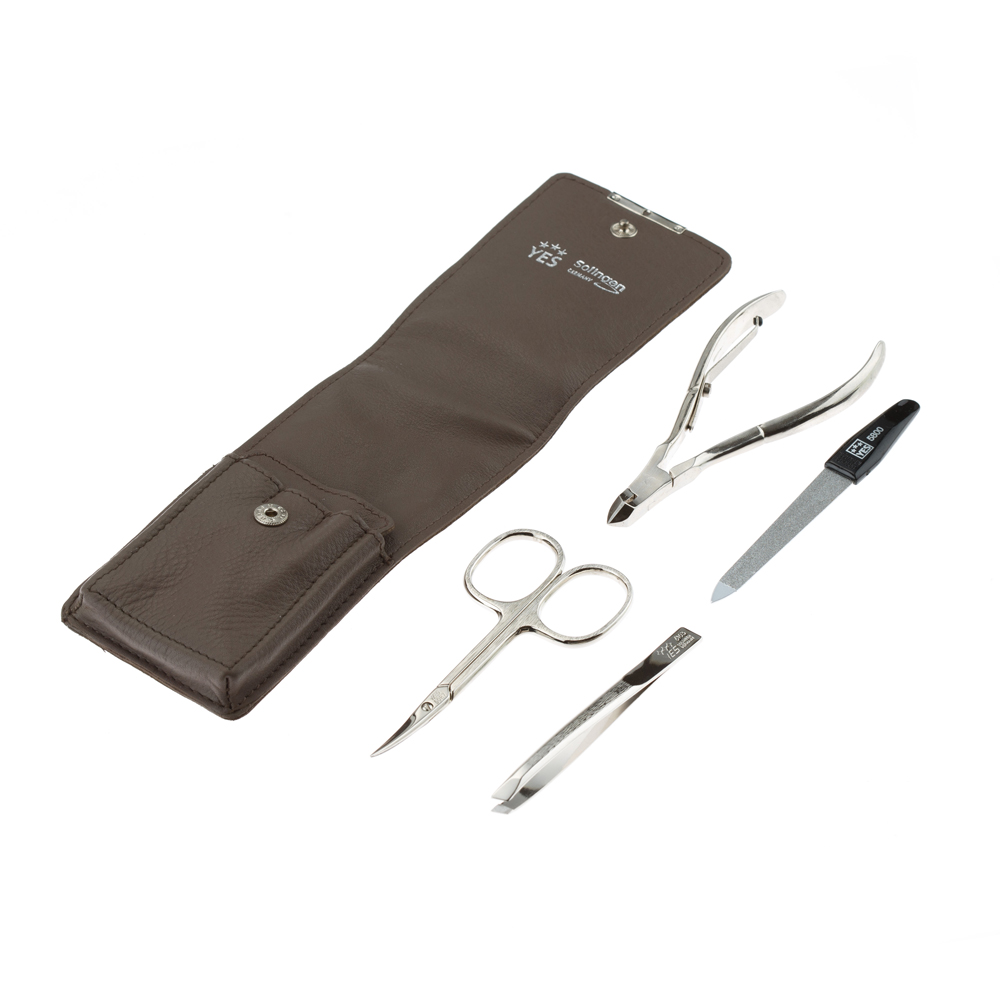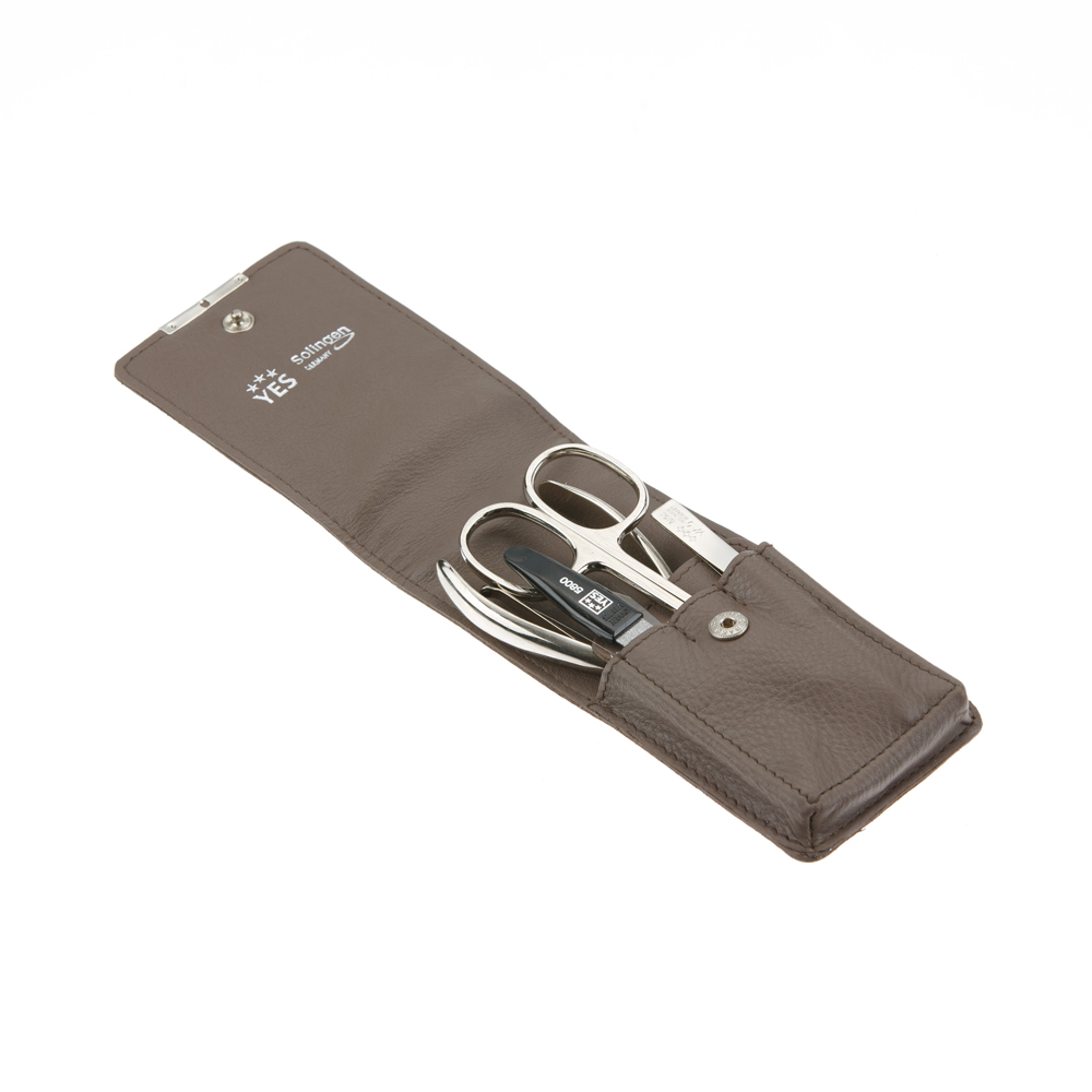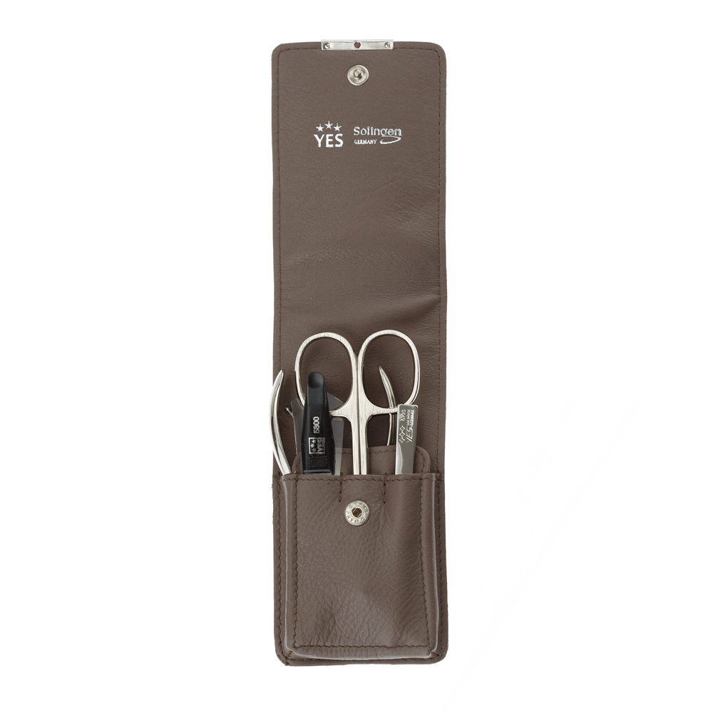 Маникюрный набор YES, 4 пр. Футляр: натуральная кожа, цвет серый, 9234