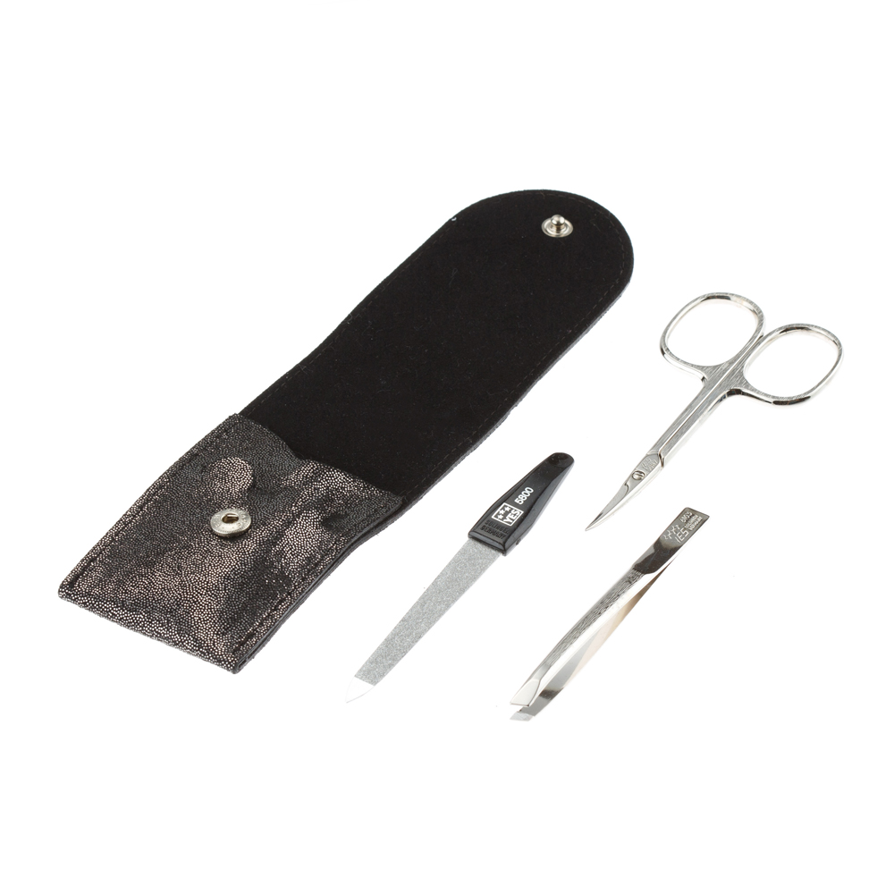 Маникюрный набор YES, 3 пр. Футляр: натуральная кожа, цвет черный, 9153